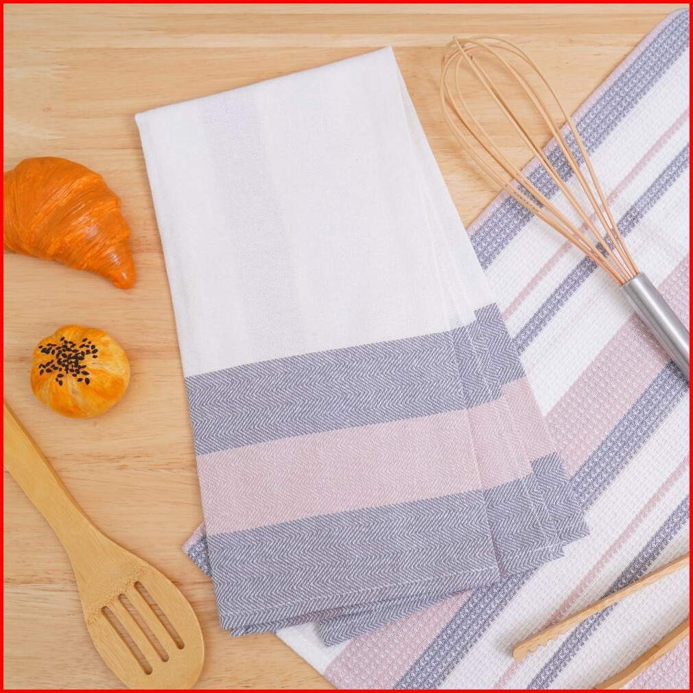 Informa Set 2 Pcs Kain Lap Dapur Stripe - Abu-abu Pink Kain Serbet Pembersih Serbaguna Topo Dapur Multifunctional Towel
