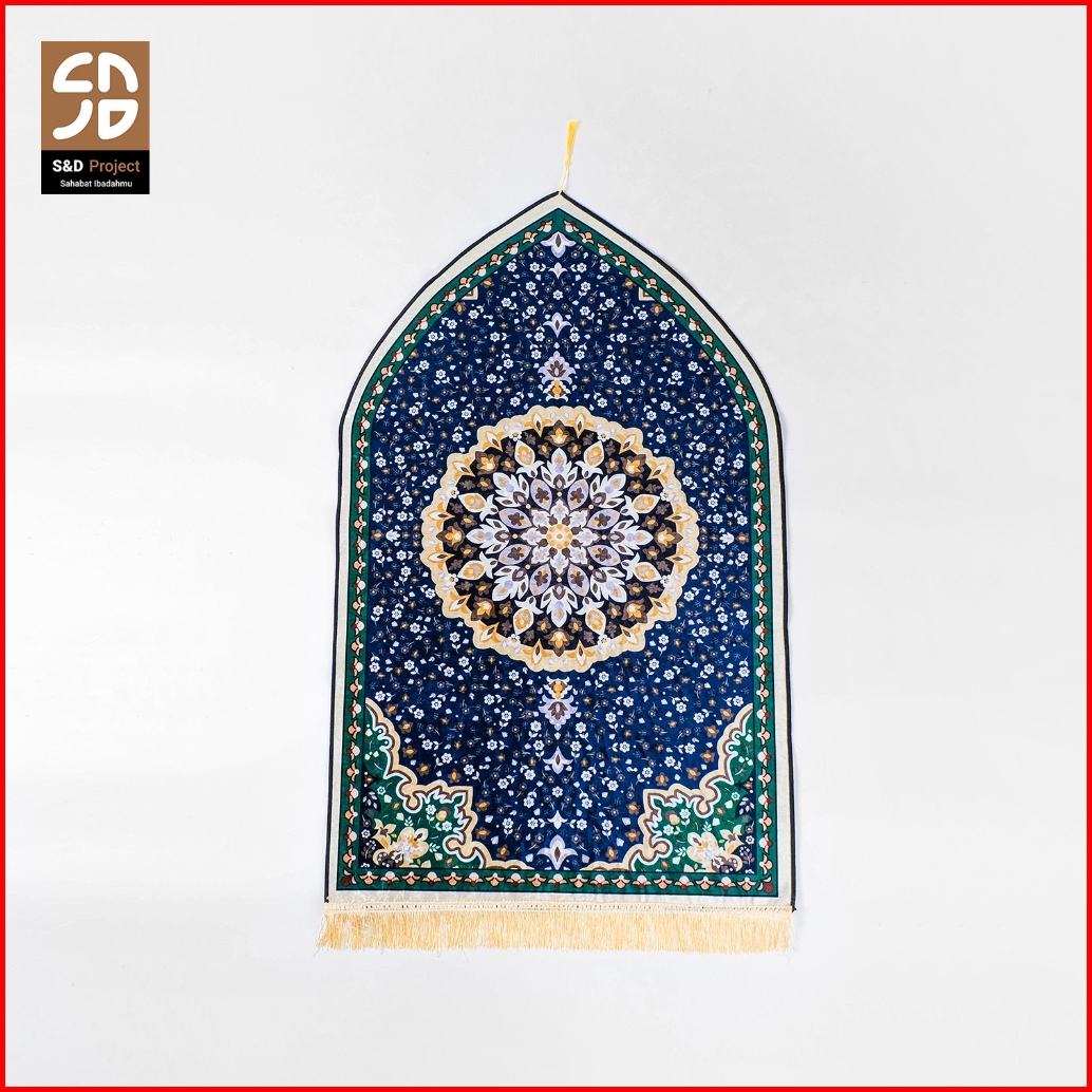 S D Project Sajadah Motif Bentuk Printing Cutting Bahan Poliester Ukuran 70x110 - Navy Hijau