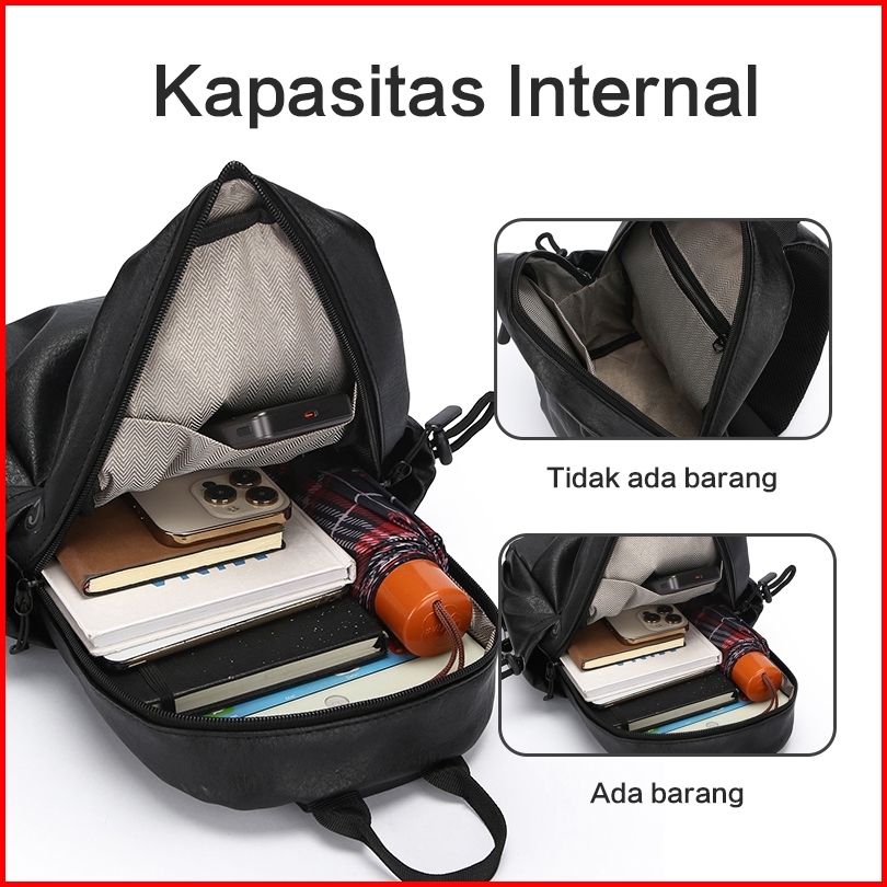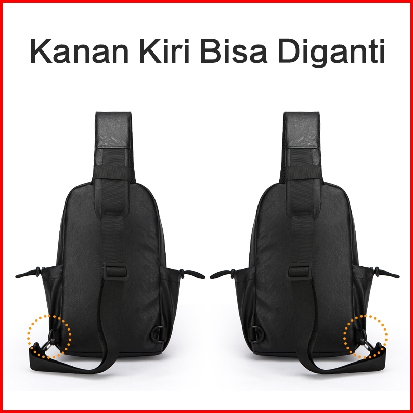 Freeknight Tas Selempang Pria Multifungsi Sling Bag Cowok Pu Leather Tas Casual Pria Ts615