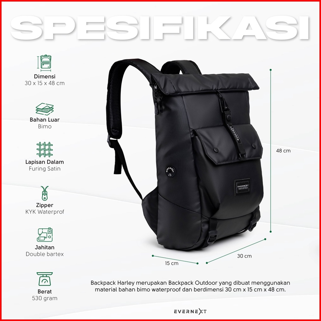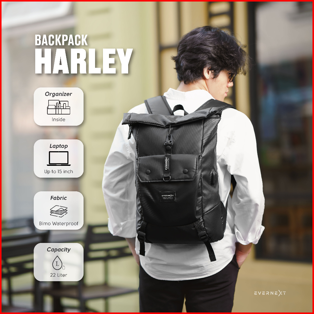 Evernext - Tas Ransel Pria Waterproof Tas Sekolah Cowok Backpack Laptop Harley Tas Kuliah Kerja Pria