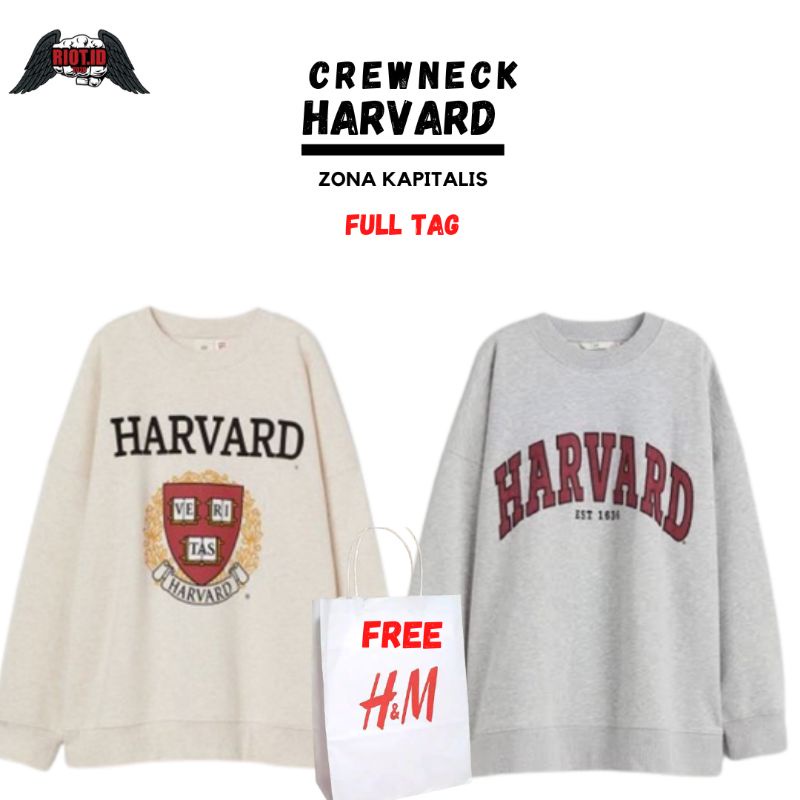 CREWNECK HM HARVARD CREAM GREY FREE PAPER BAG FULL TAG JAKET SWEATER HOODIE PRIA WANITA COWO CEWE LAKI PEREMPUAN UNISEX