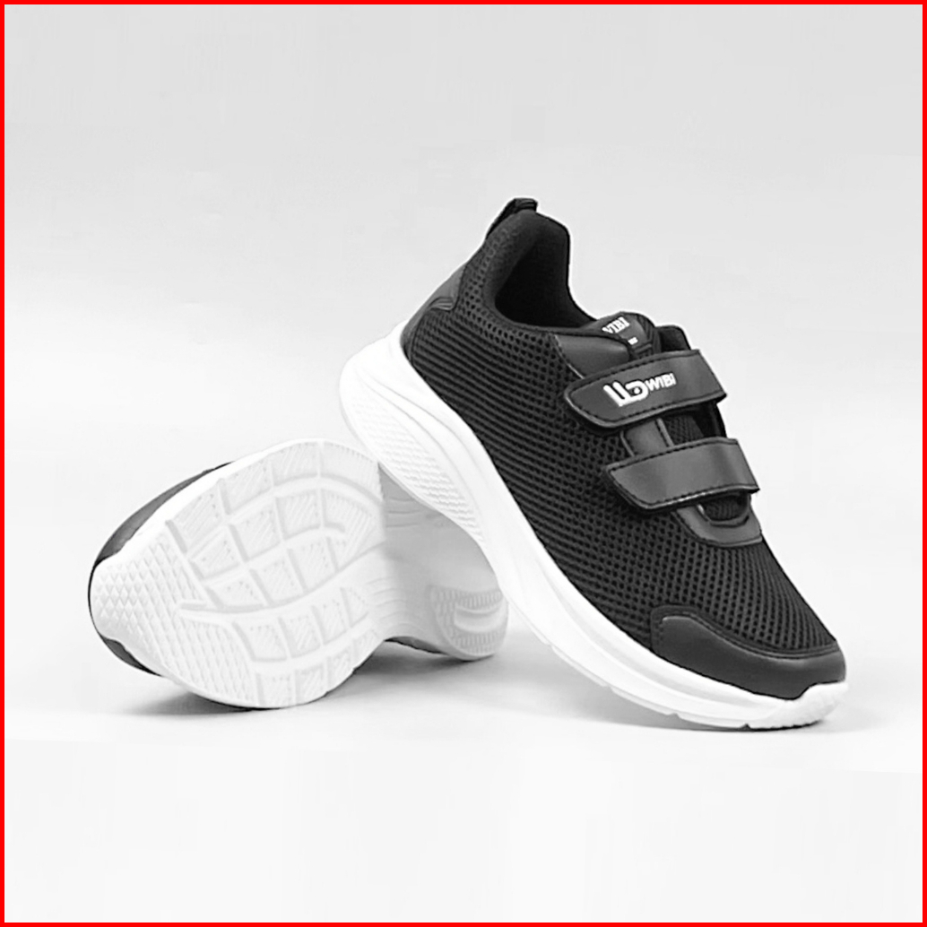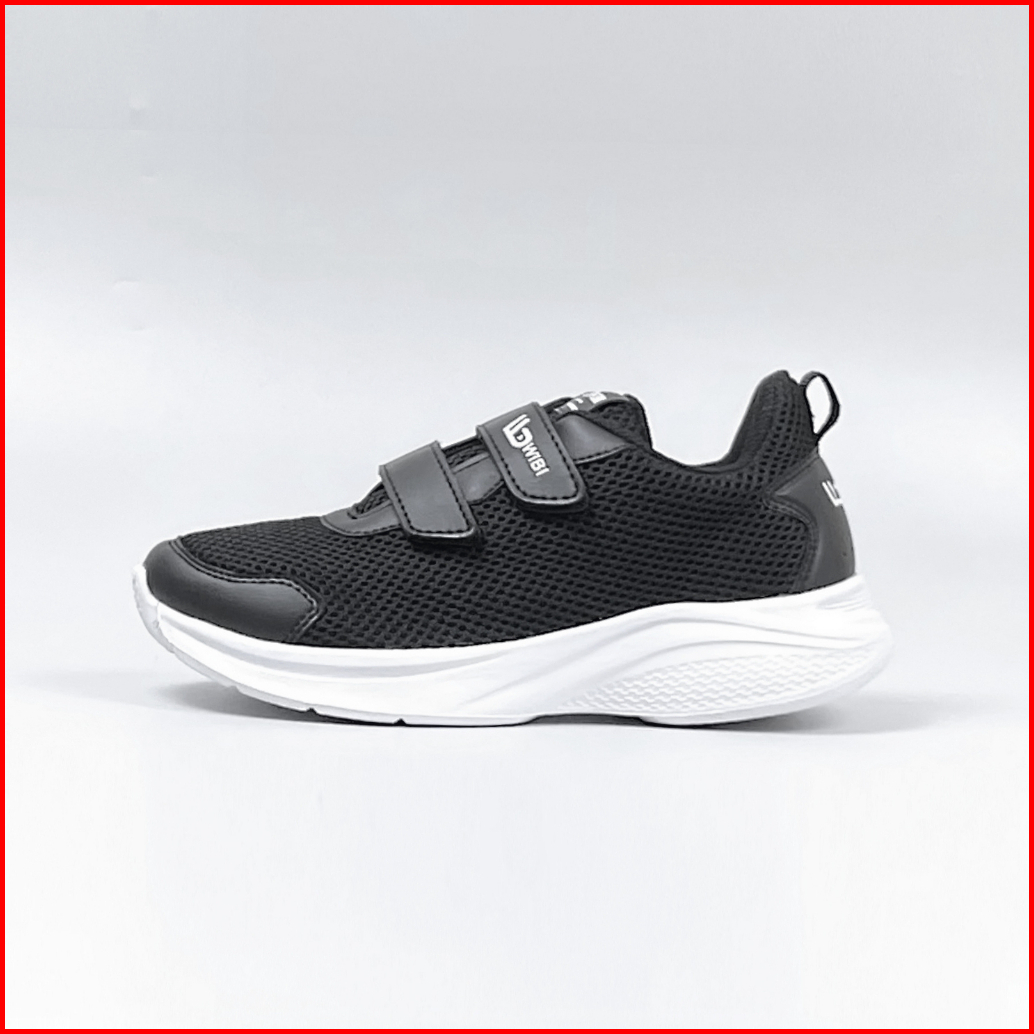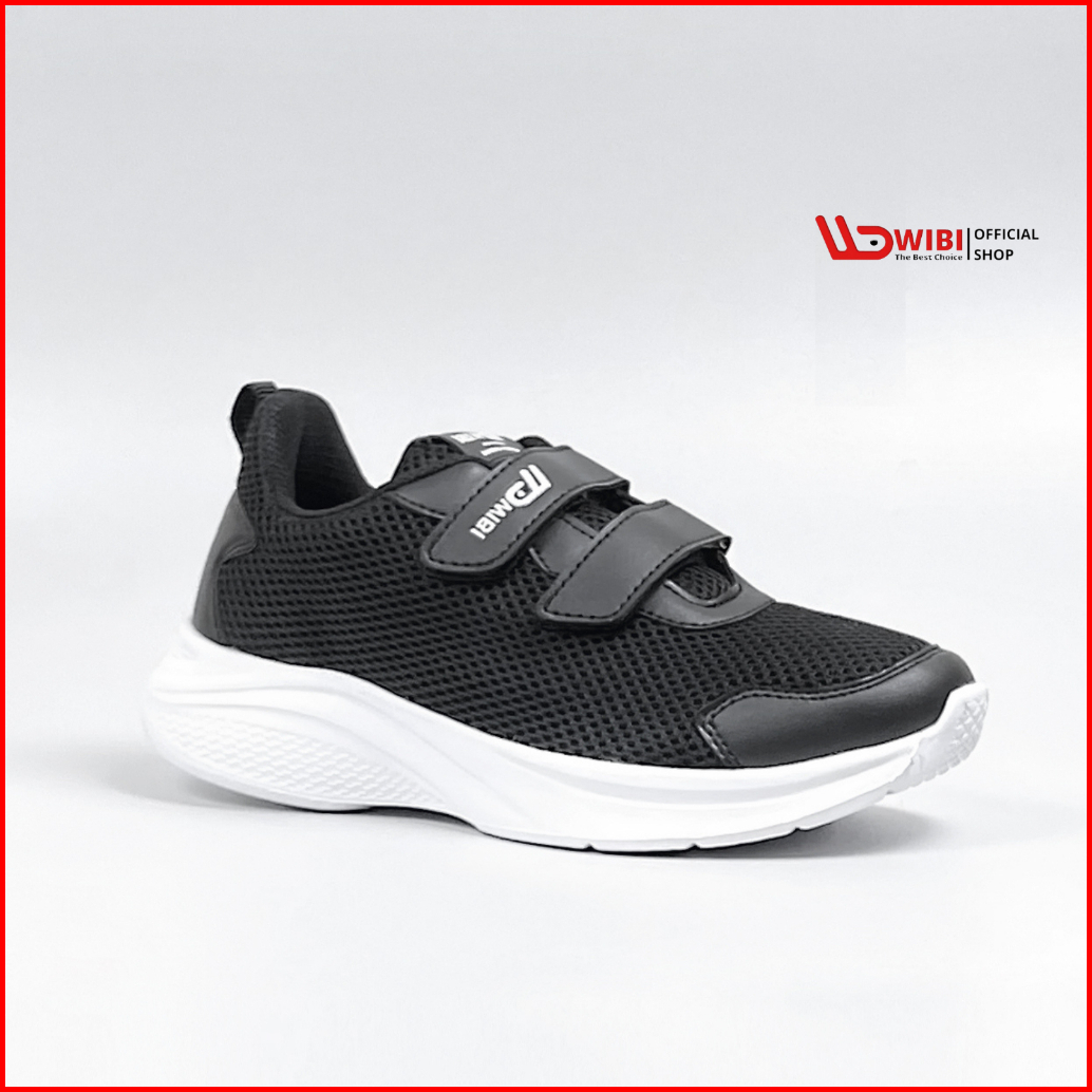 Wibi Hexagon Back To School Shoes Sp51-01 Sepatu Sekolah Anak Tali Perekat Pria Wanita Black White