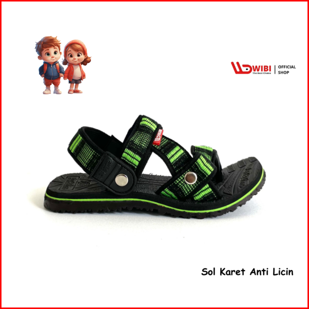 Wibi Kids Ak01-03 Sandal Gunung Anak Laki Laki Perempuan Sol Karet Slip On Jepit Size 28 Sd 37 Hijau