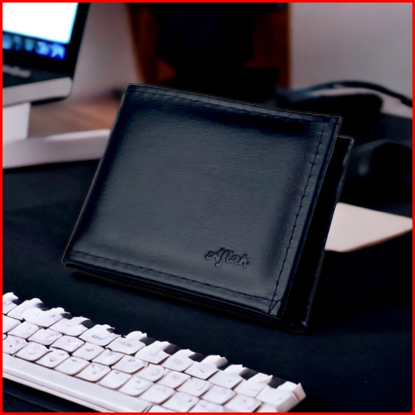 Wibi - Aflah D02-01 Dompet Pria 2 Lipat Bahan Kulit Sintetis Premium Kuqala - Hitam