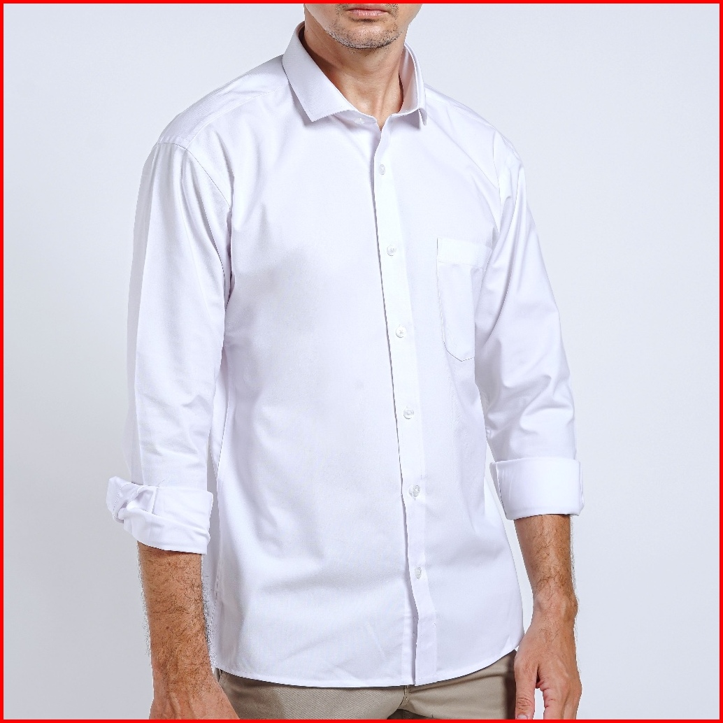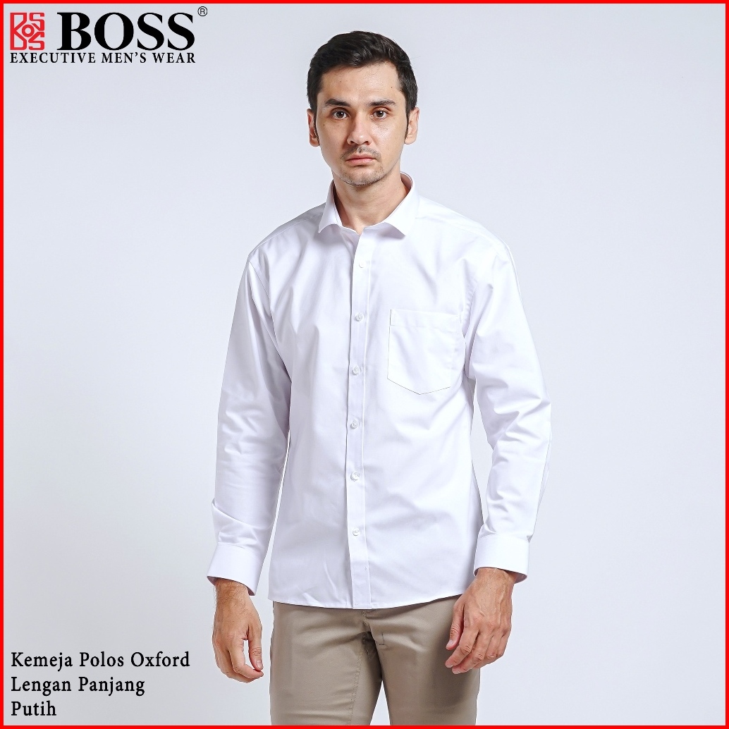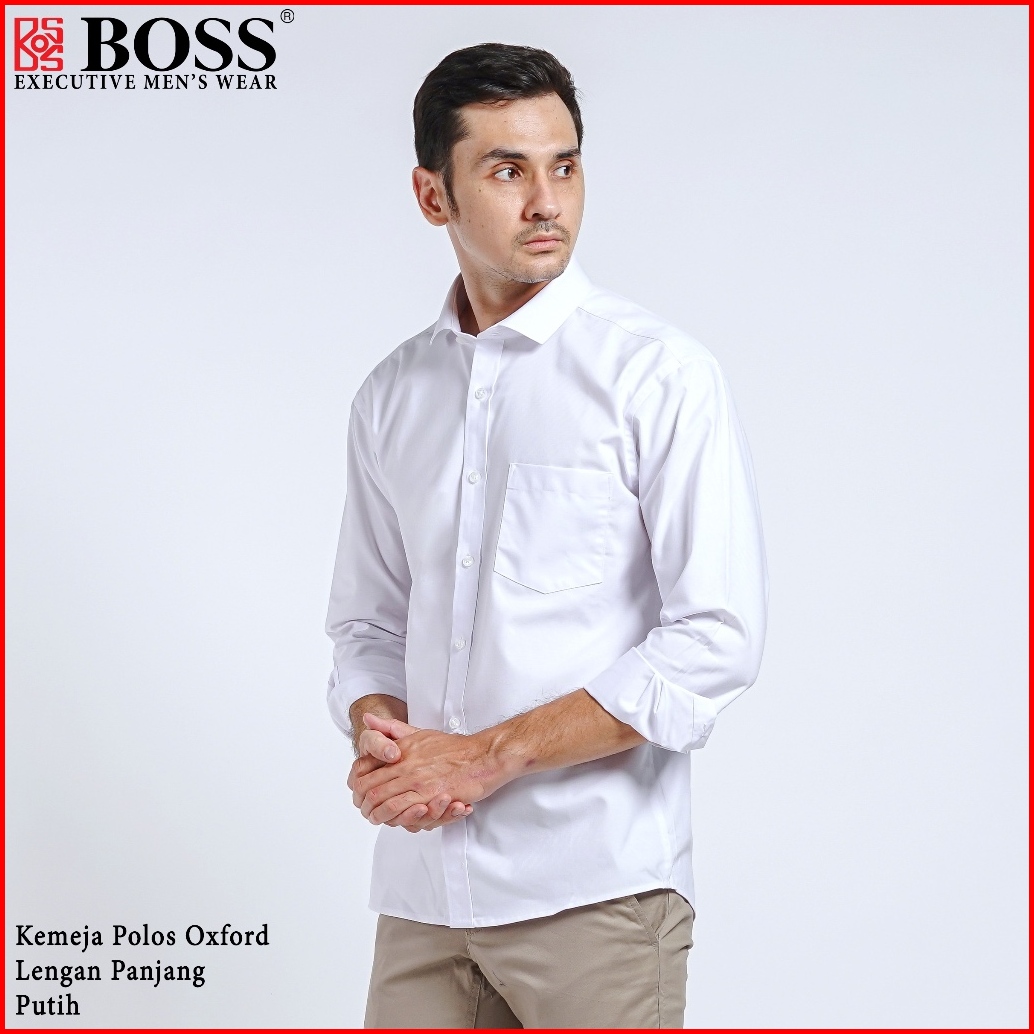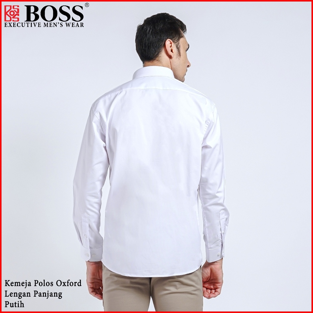 Boss Kemeja Polos Pria Oxford Lengan Panjang Slim Fit Oxk Putih