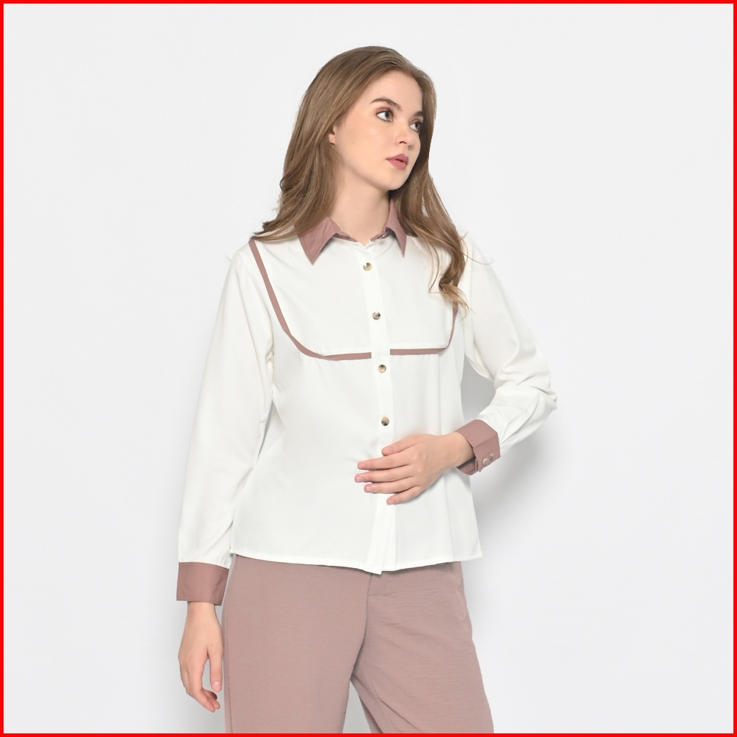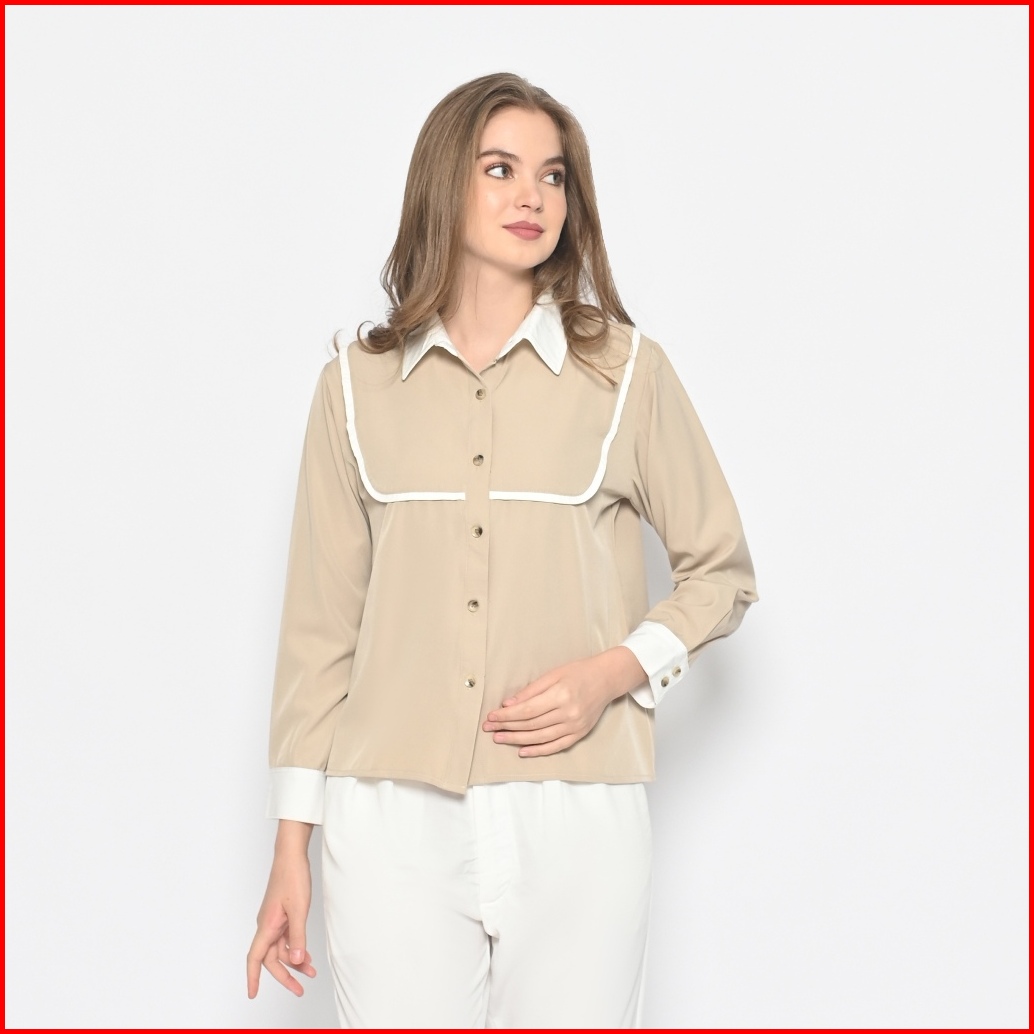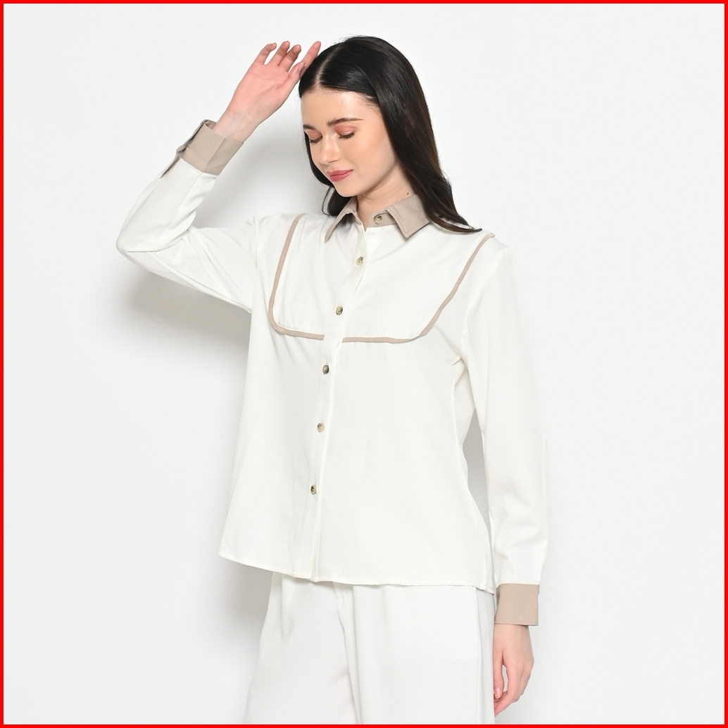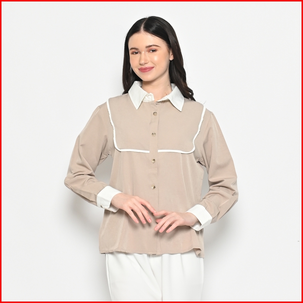 Queentin Kemeja Wanita Kombinasi 0199 Polyester Primadonna Polos Lengan Panjang