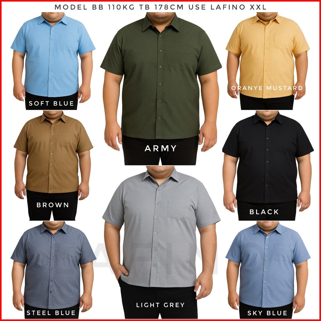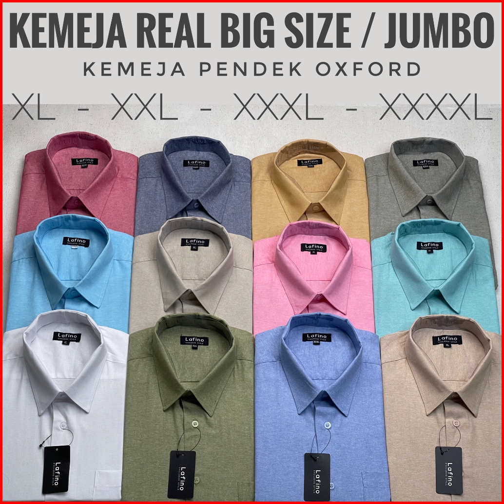 Lafino M L Xl 2xl 3xl 4xl Xxl Xxxl Xxxxl Heavyweight Oxford Kemeja Pendek Polos Jumbo Big Size Pria