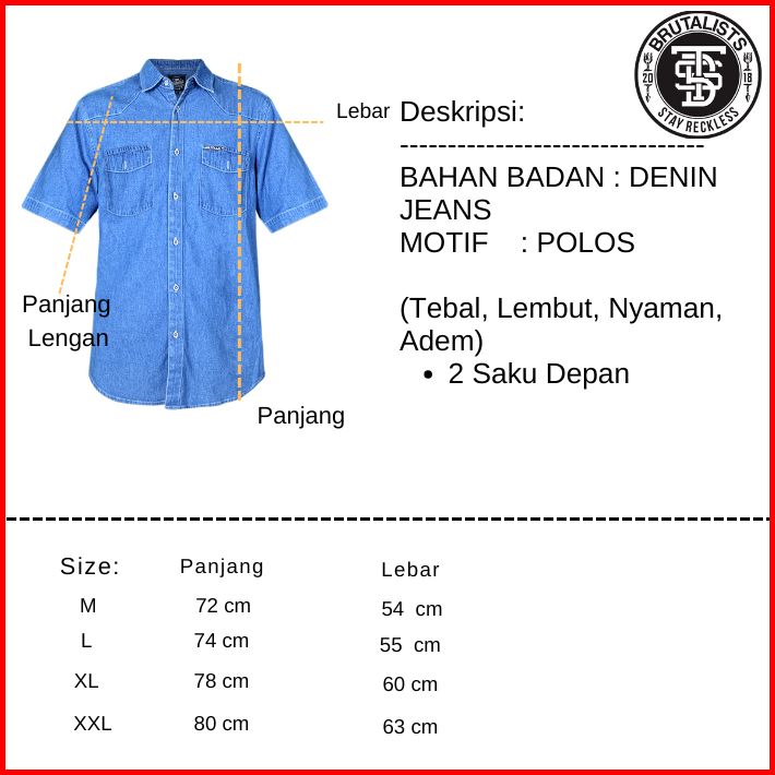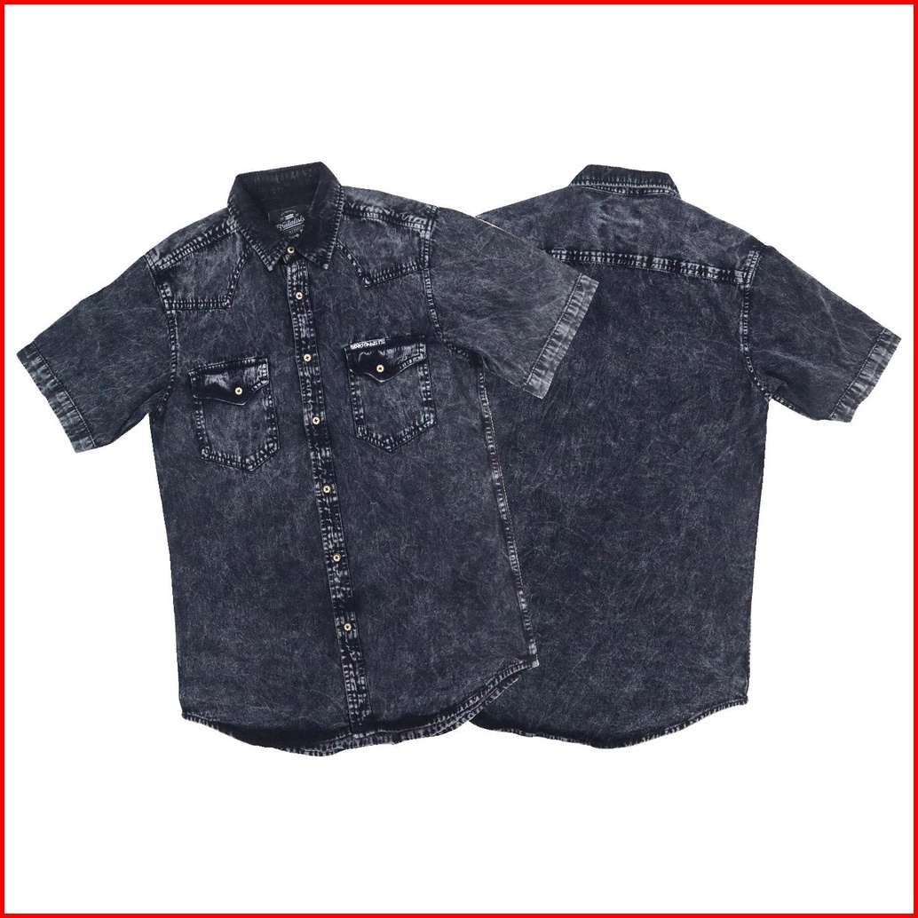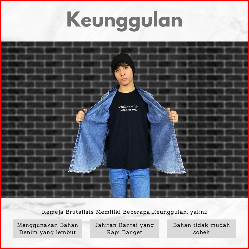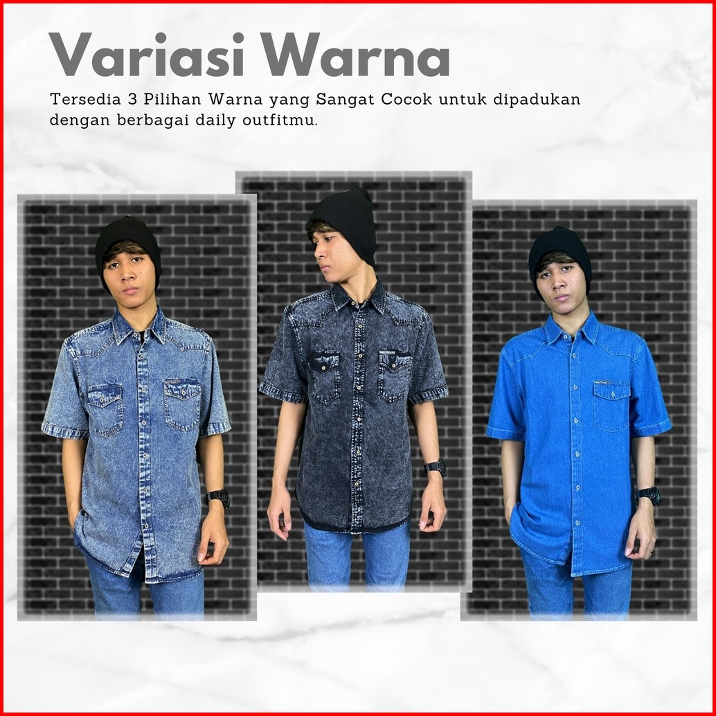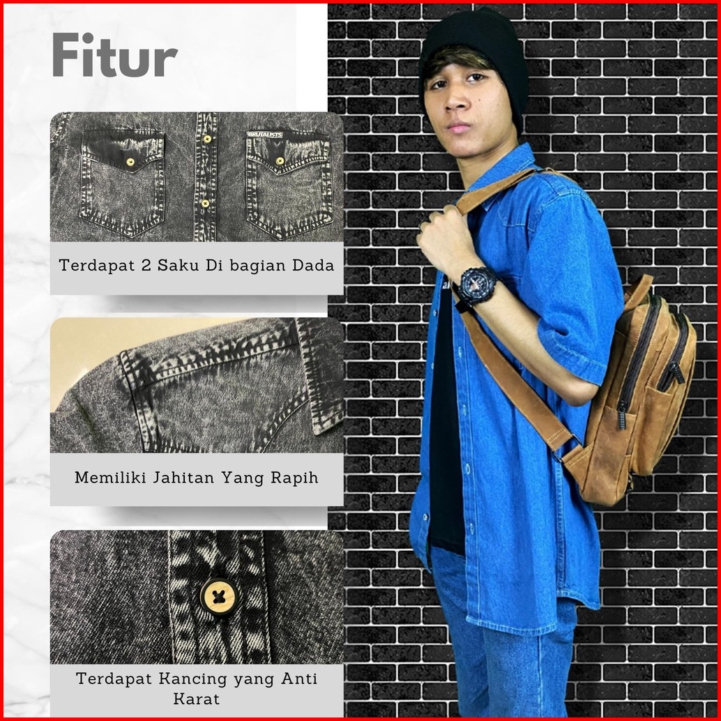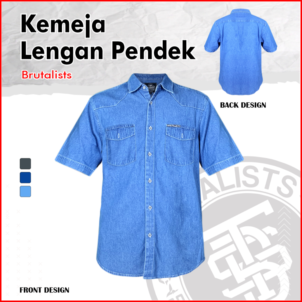 Kemeja Jeans Denim Pria Wanita Lengan Pendek Polos Brutalists