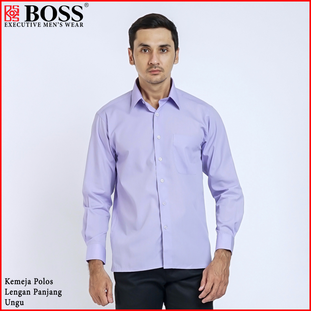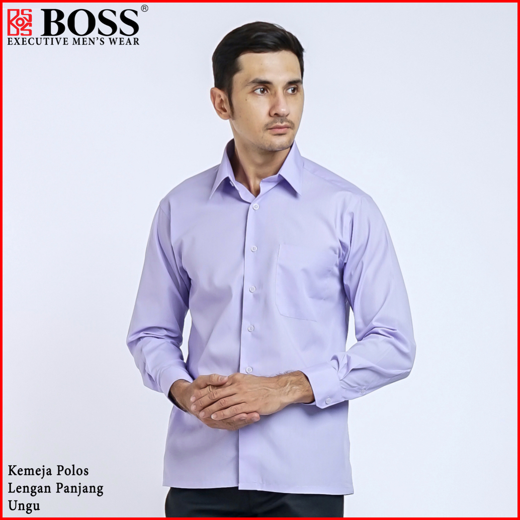 Boss Kemeja Polos Pria Lengan Panjang Regular Fit Ungu