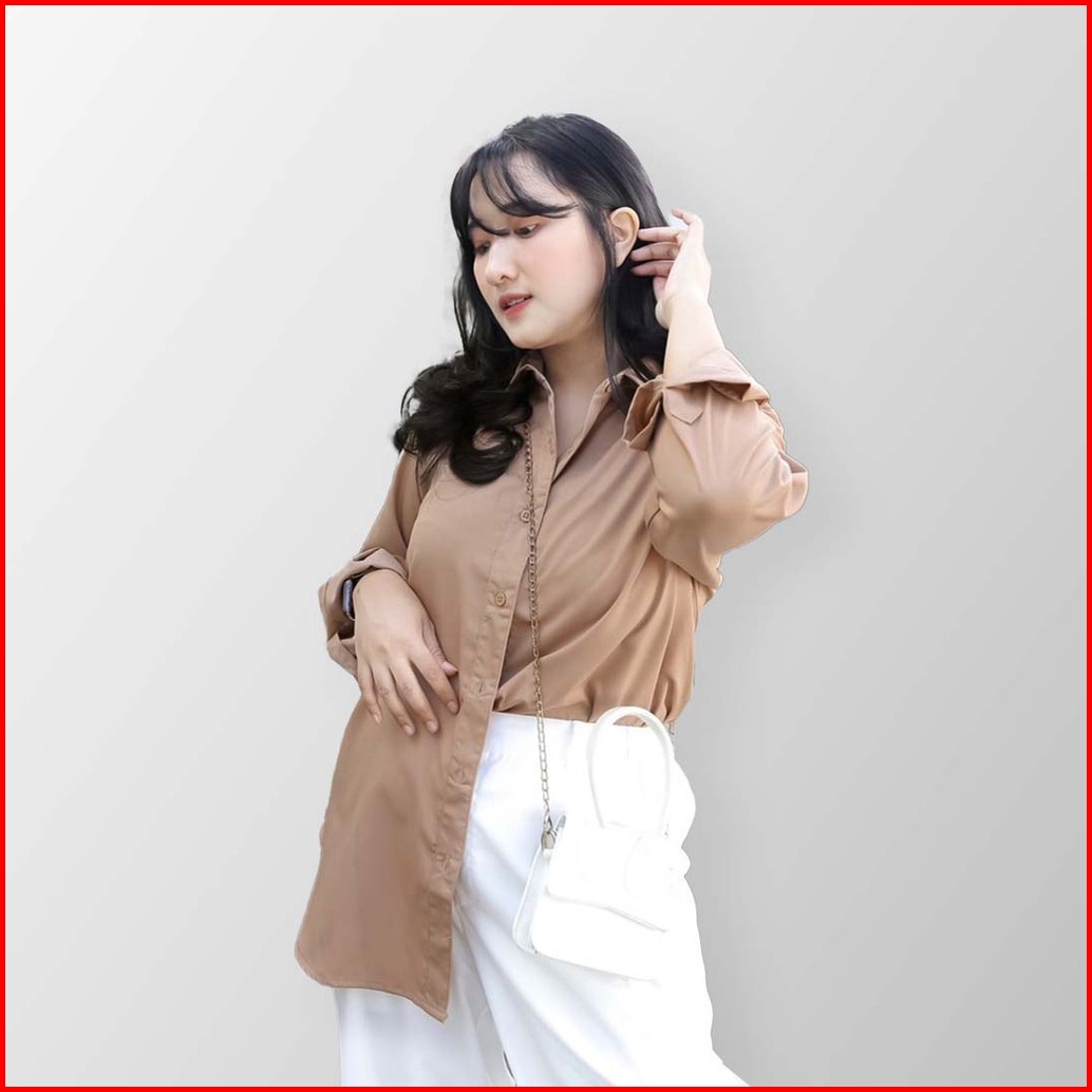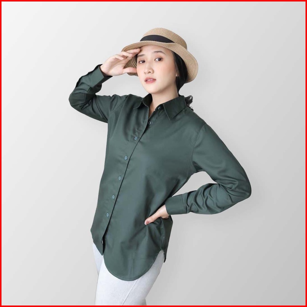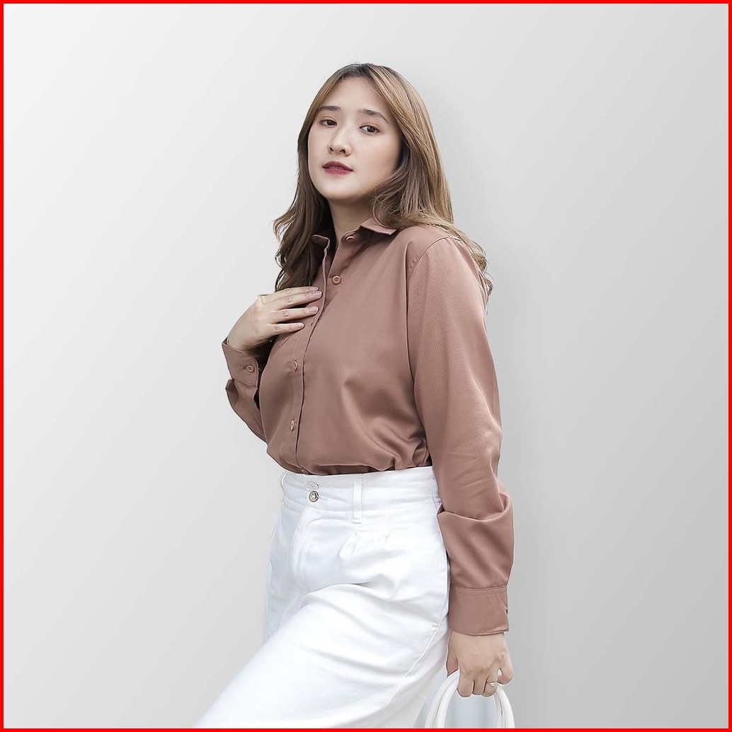 Fimelo - Kemeja Wanita Lengan Panjang Polos Kemeja Kerja Kemeja Toyobo Kemeja Basic