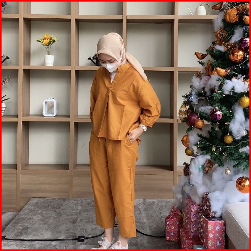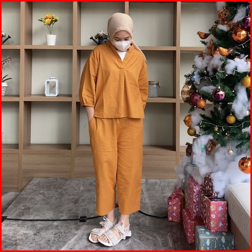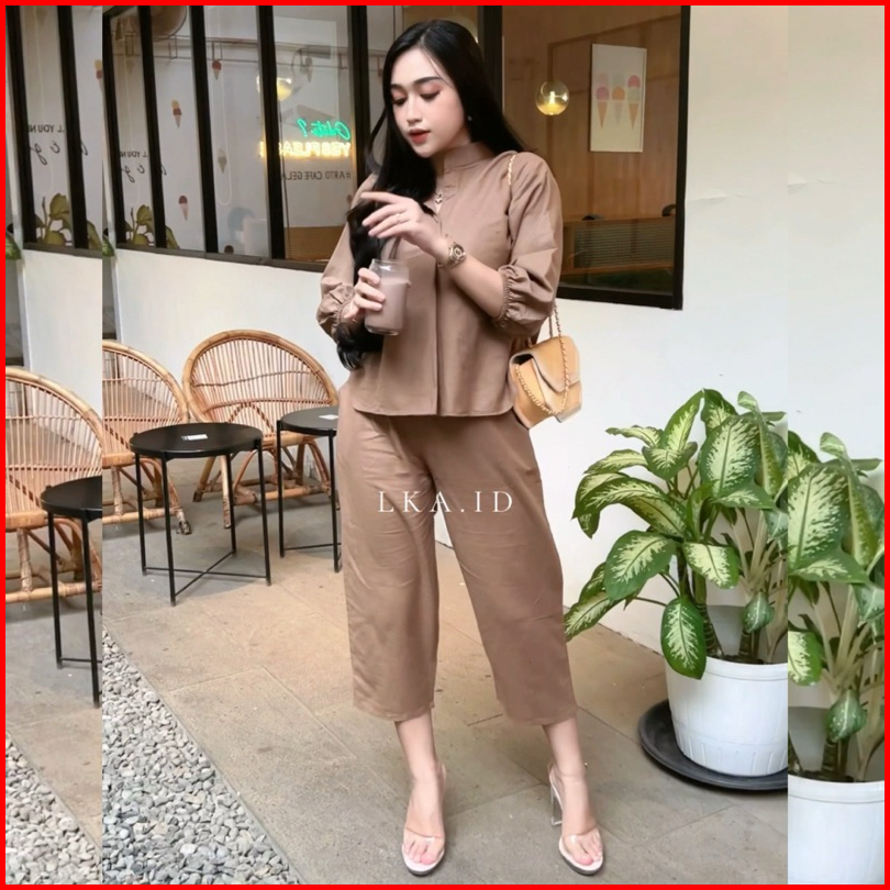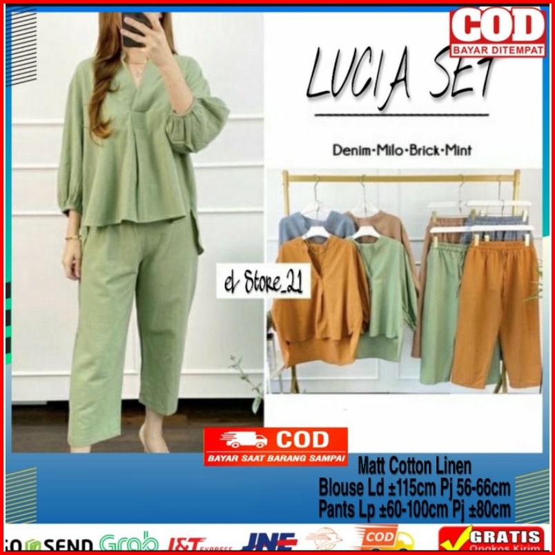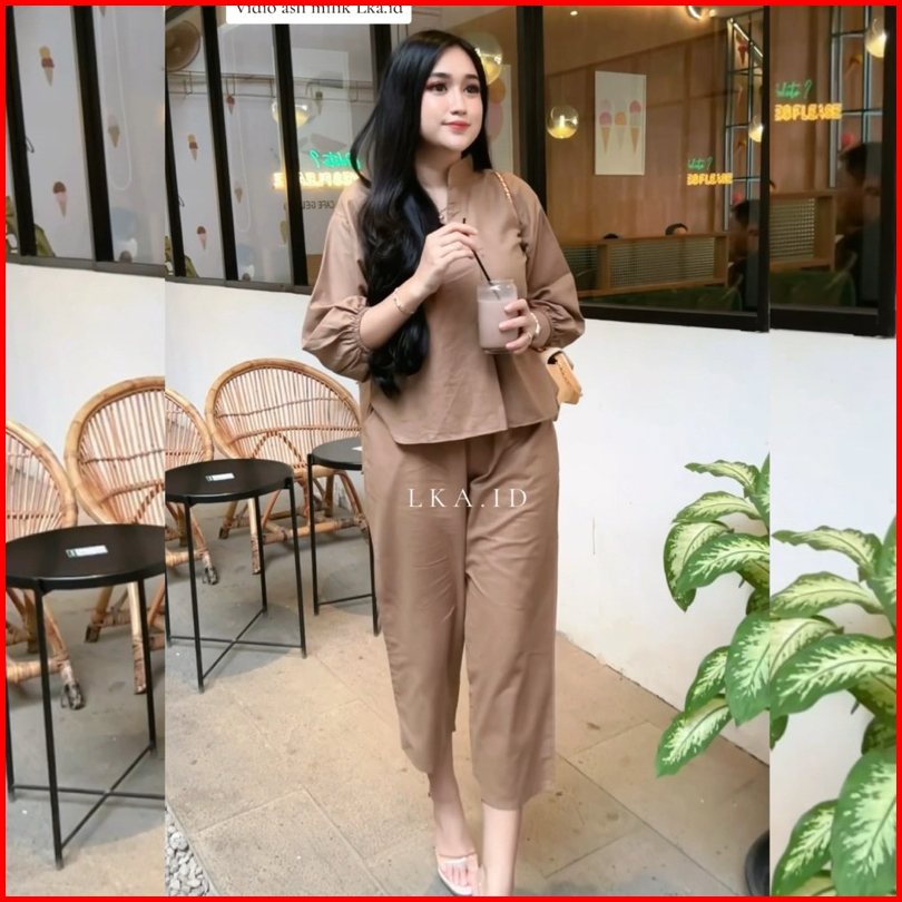 Setelan Wanita Atasan Celana Kekinian Lucia Set Linen Premium One Set Terbaru All Size