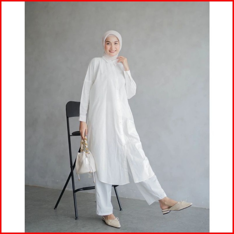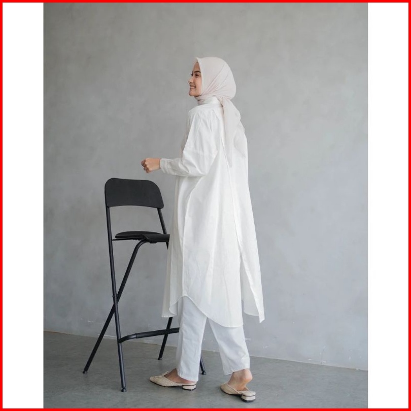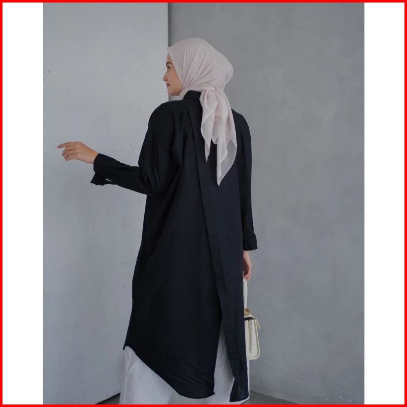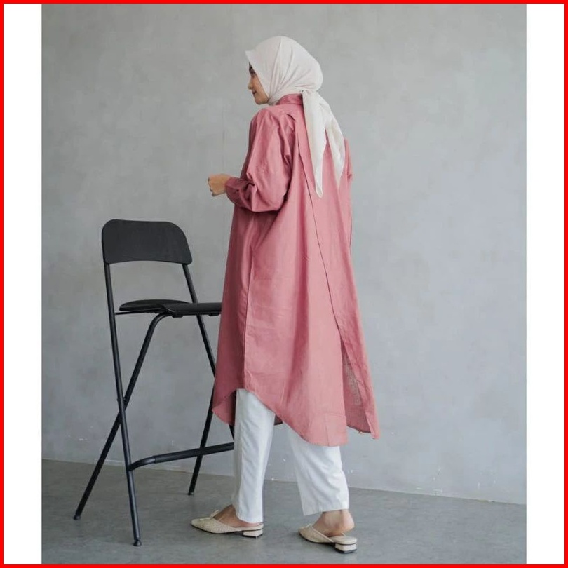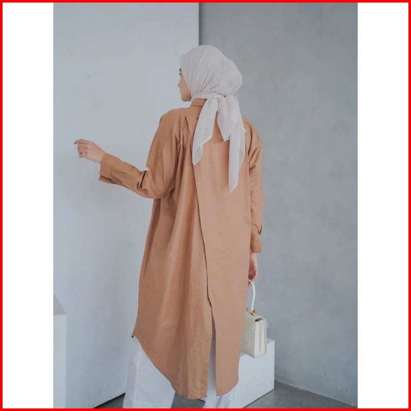 Dwyne Tunik Outer Linen Oversize Kemeja Wanita Belah Belakang
