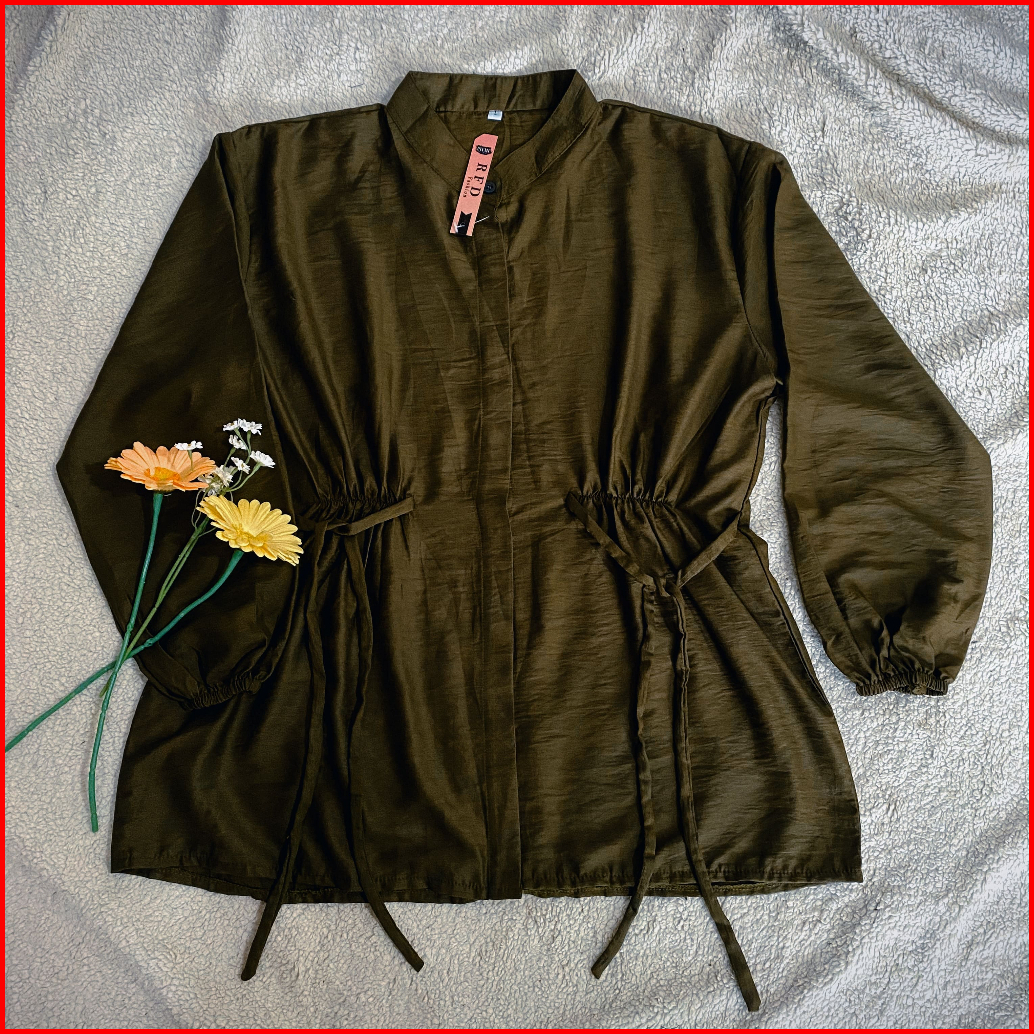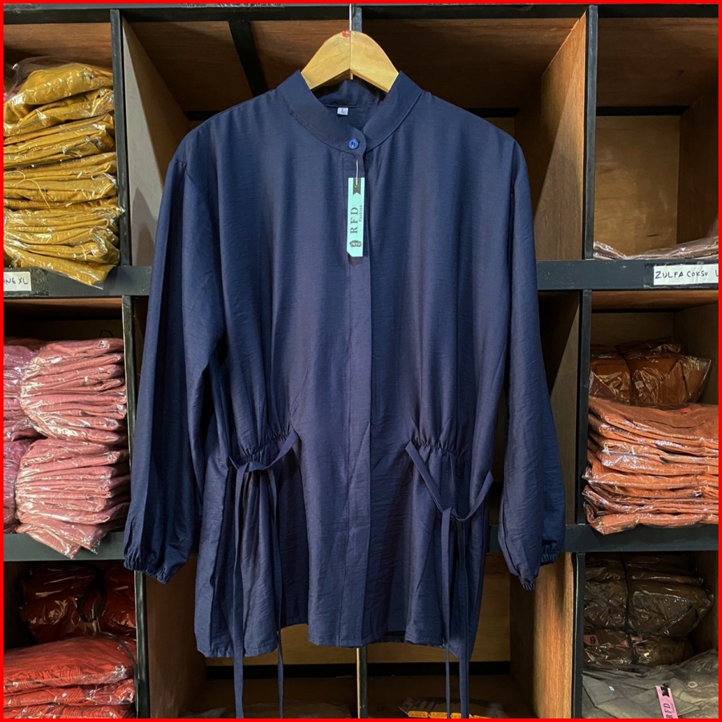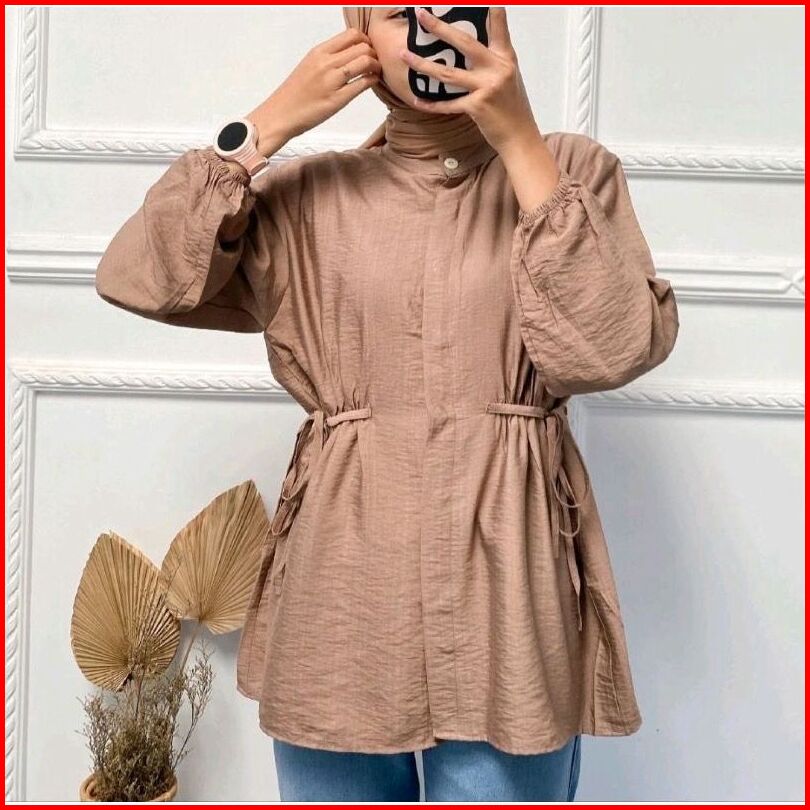 Alea Blouse Semi Tunik Polo Linen Preimum Tali Samping Ld 110cm Dan Ld 125cm
