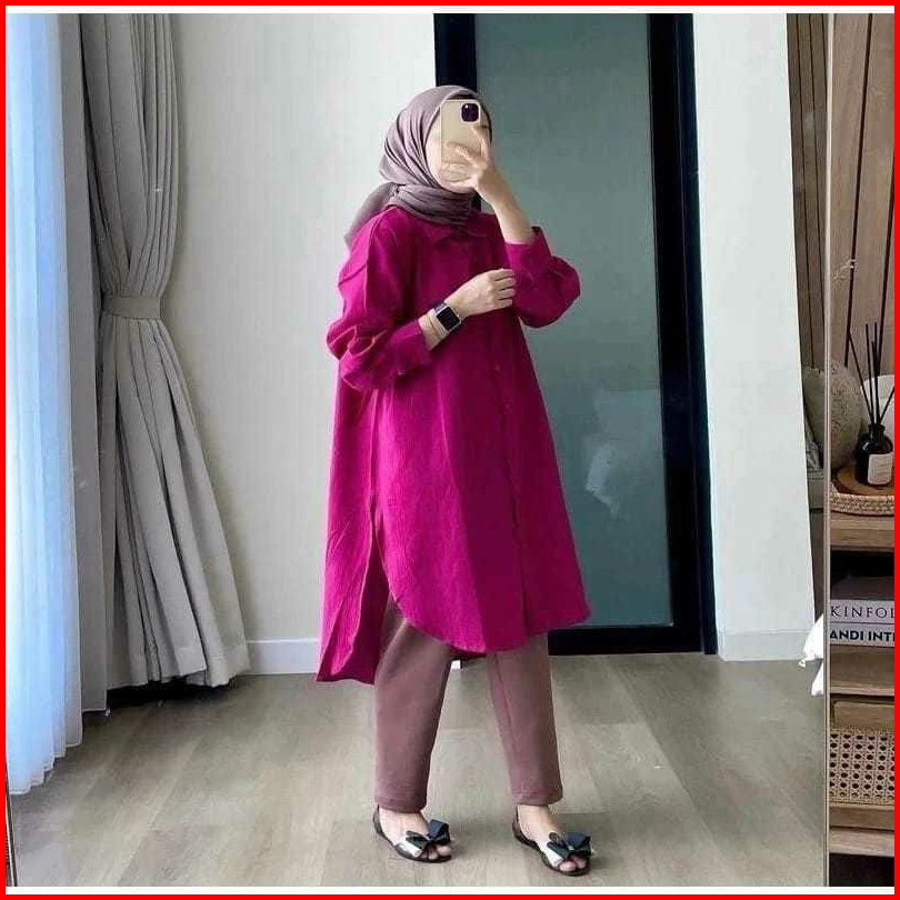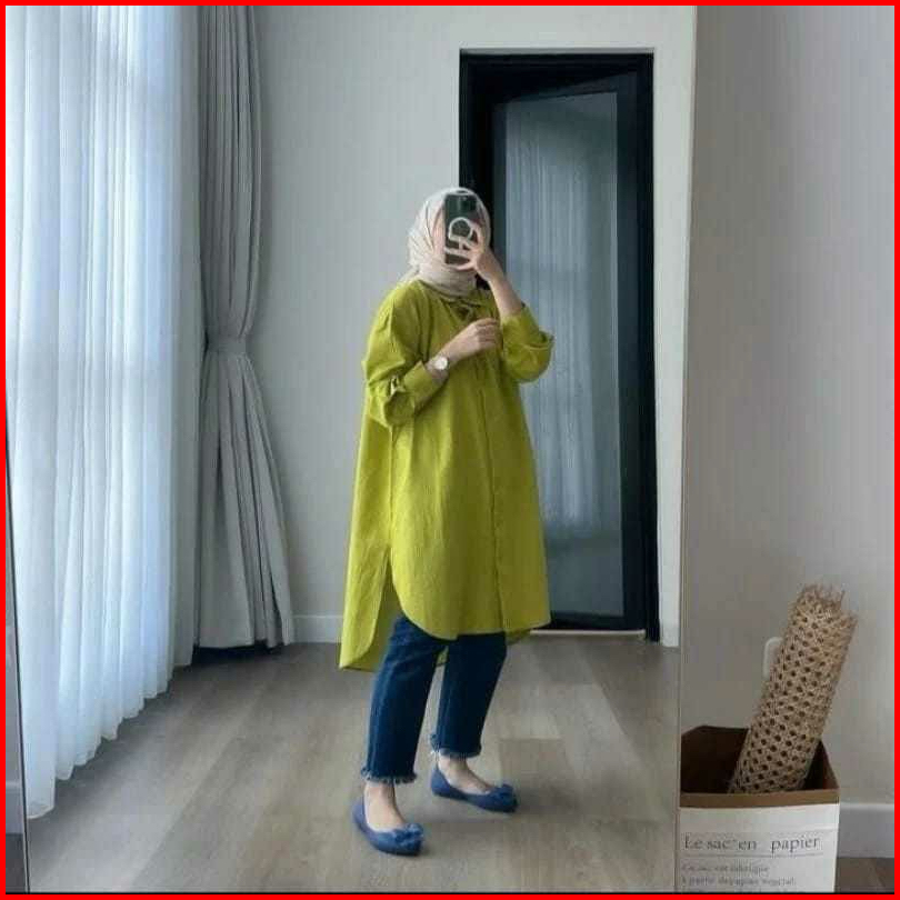 Kemeja Long Tunik Katun Linen Kemeja Oversize Kemeja Linen Panjang