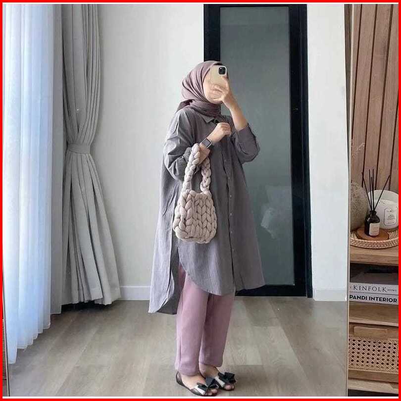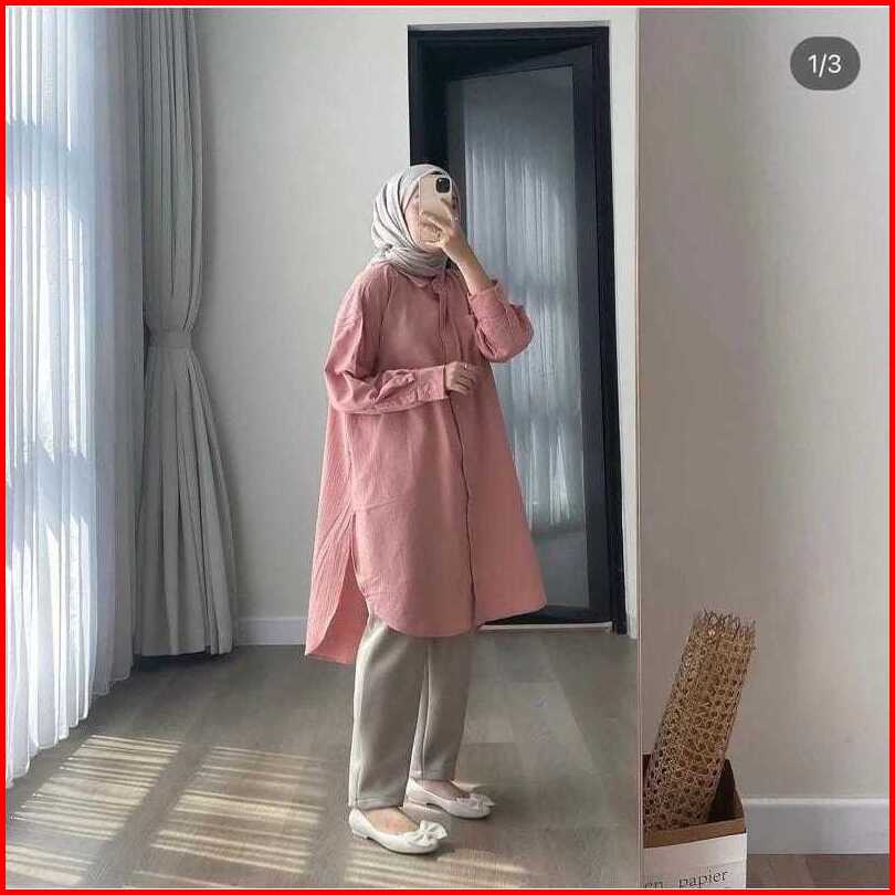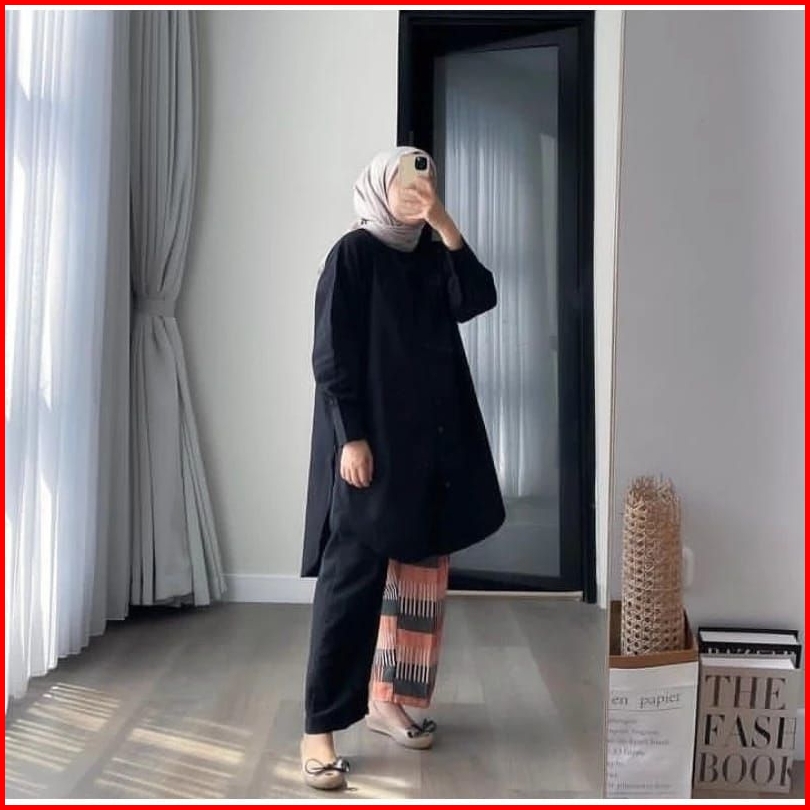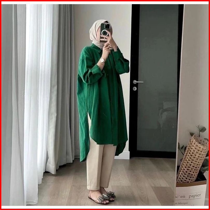 Kemeja Long Tunik Oversize Kattun Linen Full Kancing New Arival