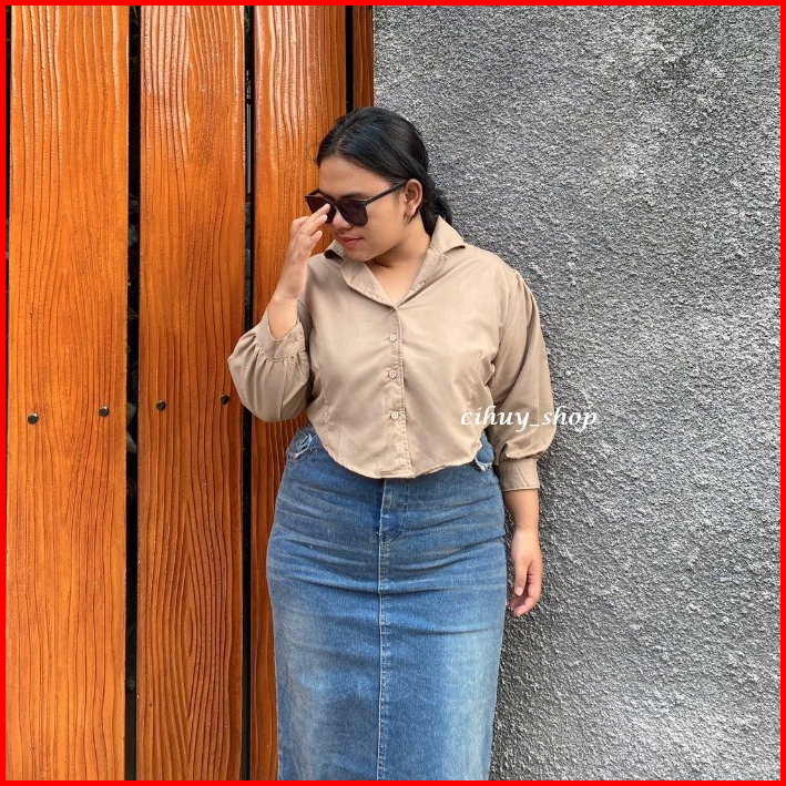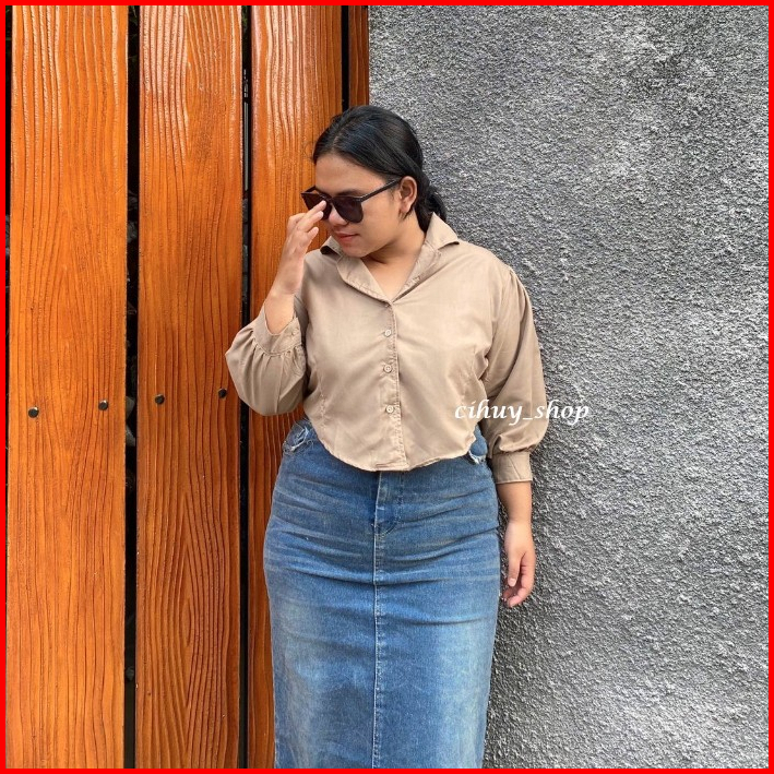 Cihuy - Radella Kemeja Puff Crop Top Jumbo Wanita Bigsize Cantik