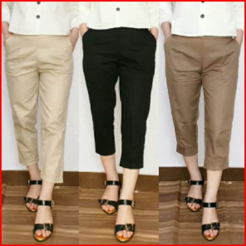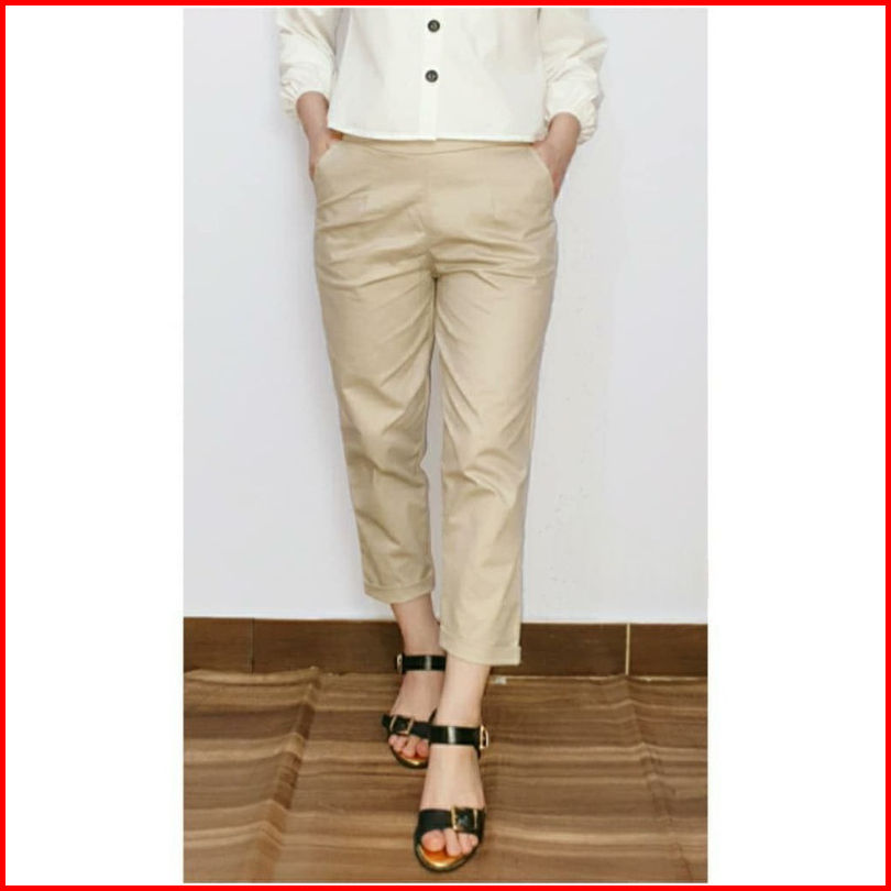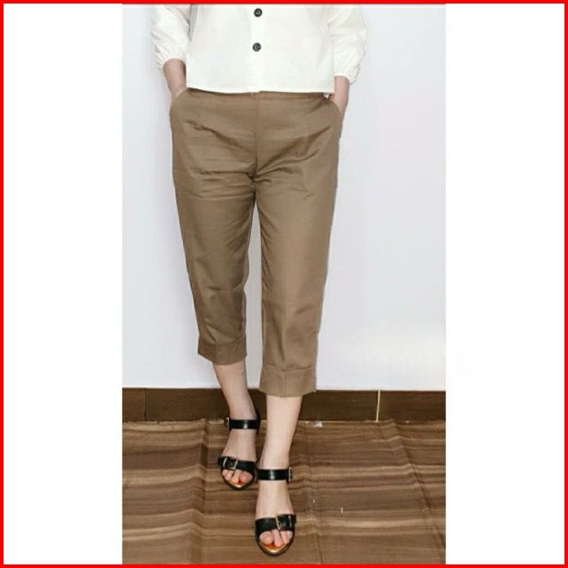 Gio Pants Celana Wanita 7 9 Katun Twill Kombet Stretch