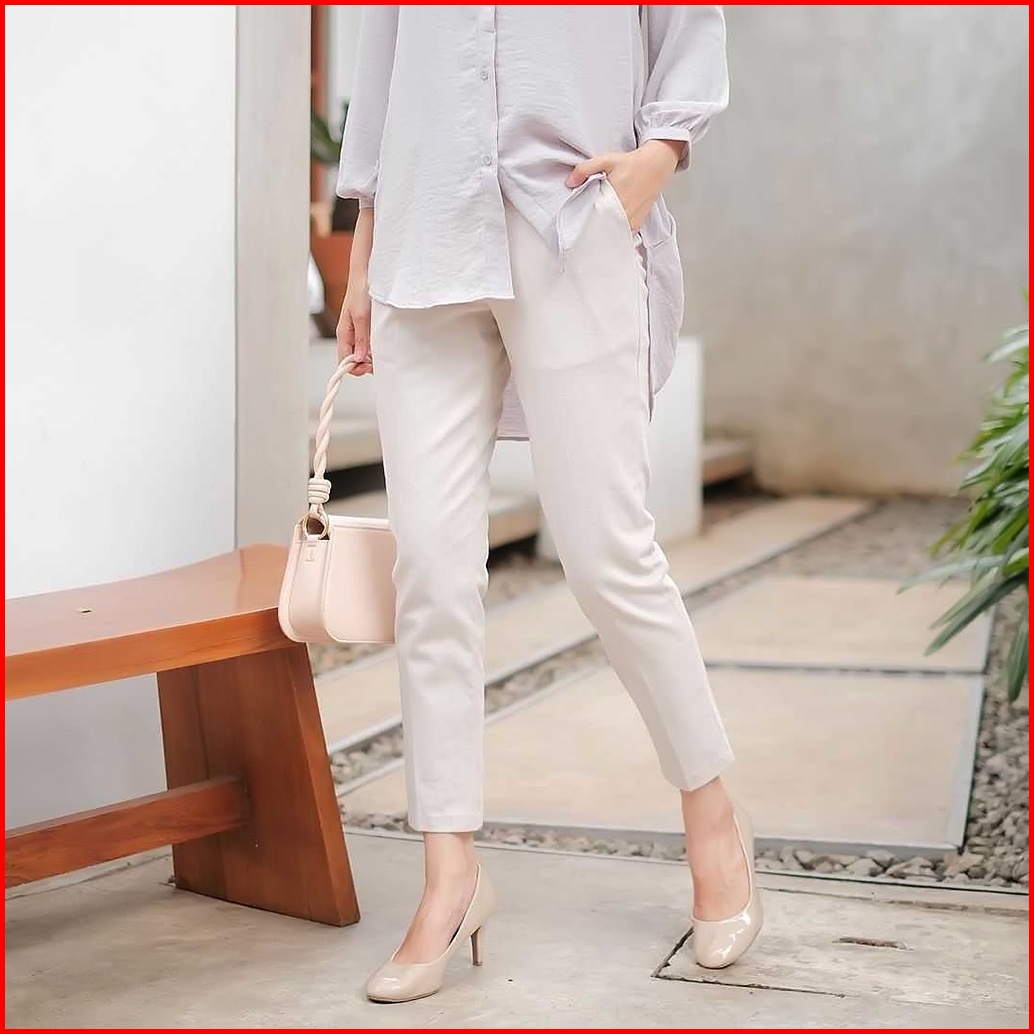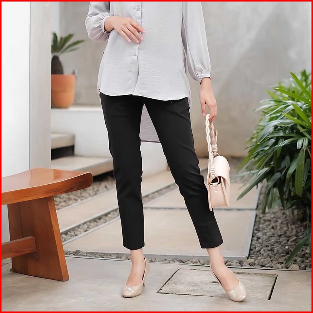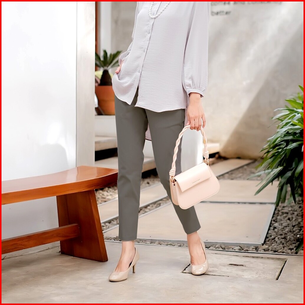 Celana Kerja Wanita Kantor Formal Hitam Abu-abu Model Basic Lurus Bahan Katun Stretch