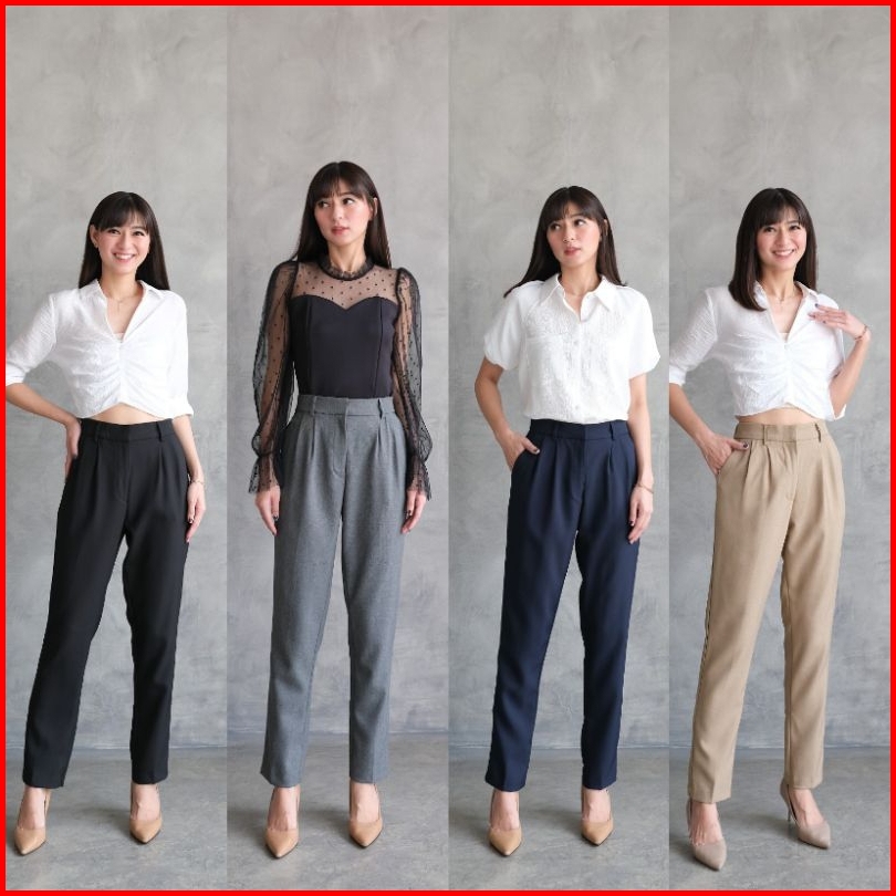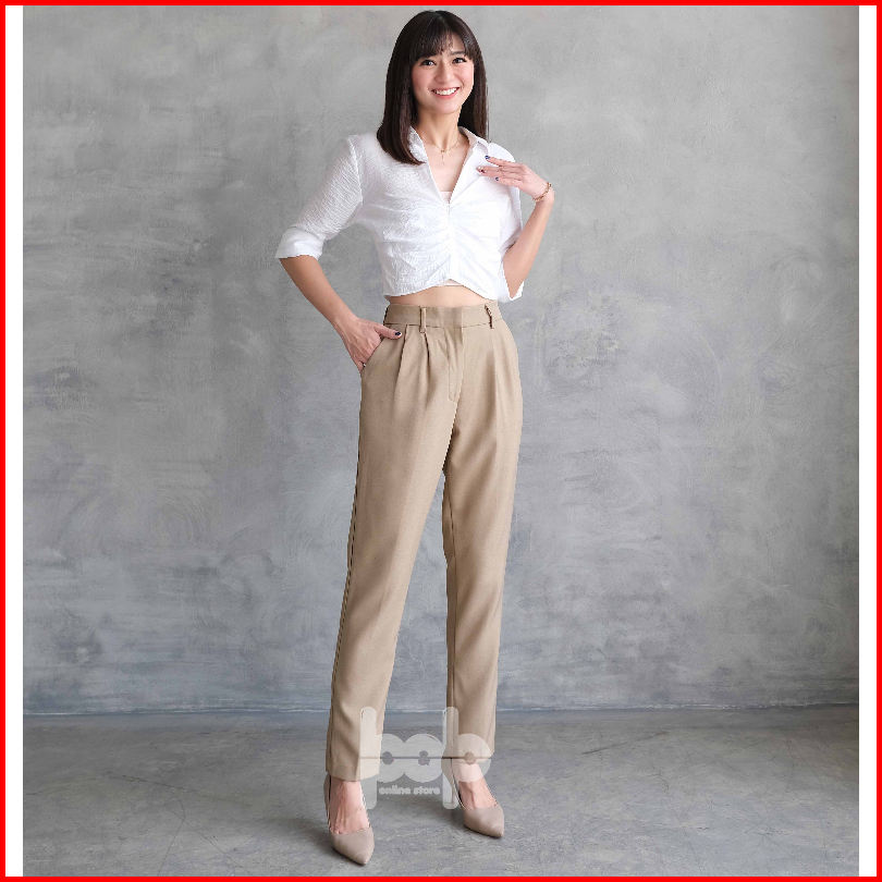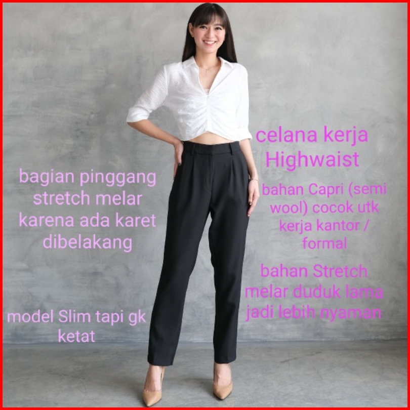 Dycy - Celana Kerja Karet Highwaist Premium Pinggang Melar Ada Bigsize