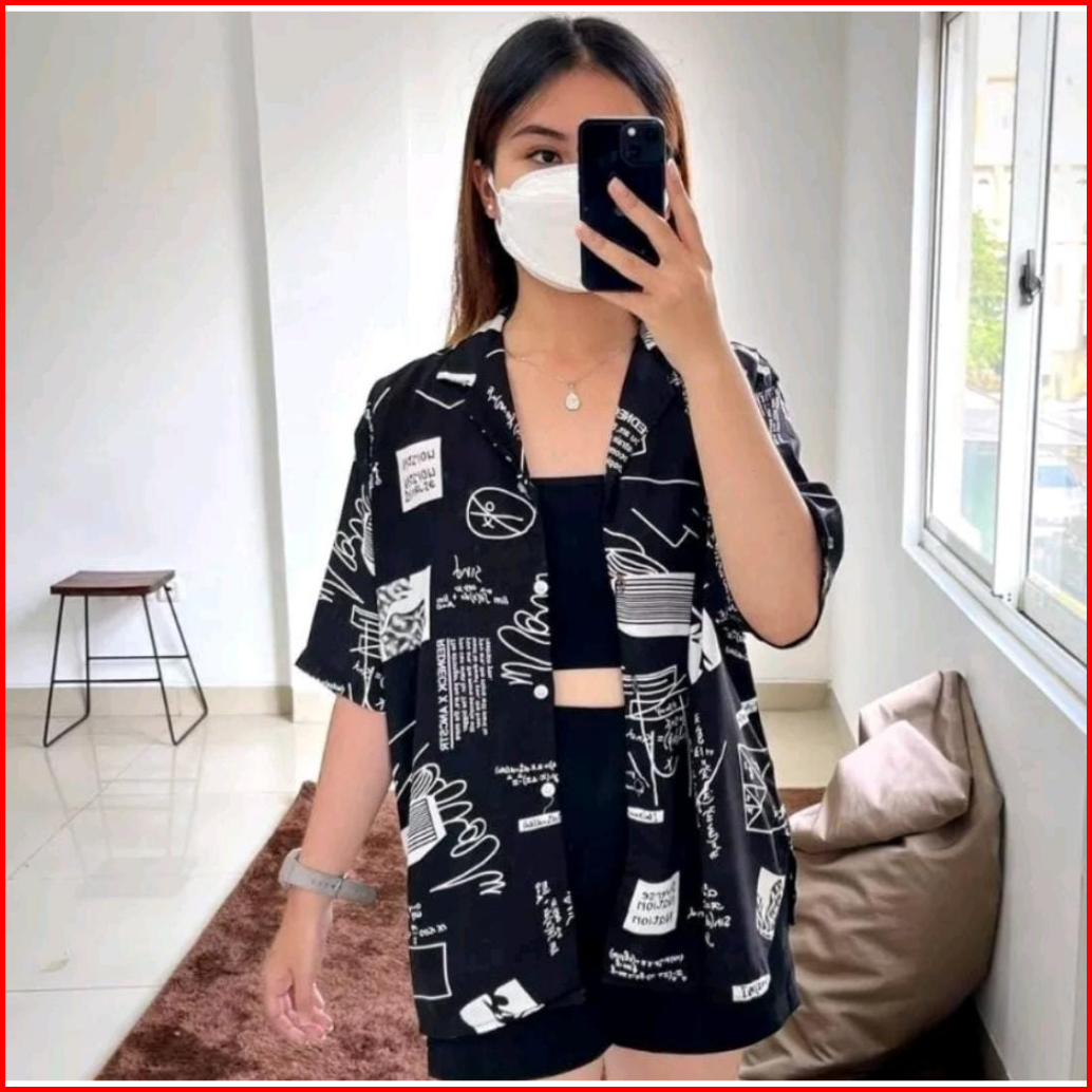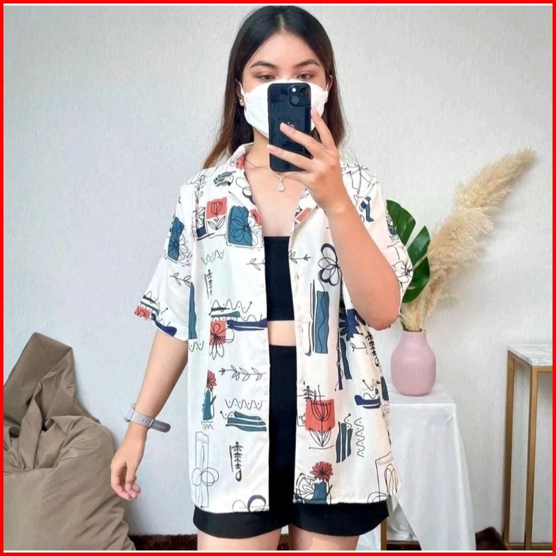 Kemeja Pendek Oversize - Kemeja Pendek Rayon Motif- Kemeja Pattren Shirt