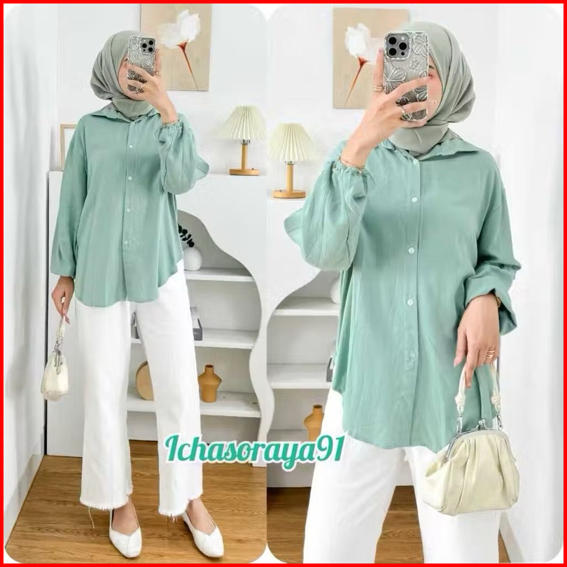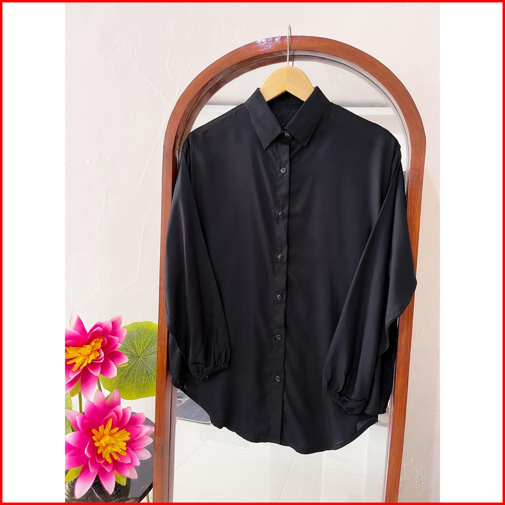 Kemeja Wanita Rayon Oversize Polos Bahan Rayon Ld 120 Cm Pergelangan Karet