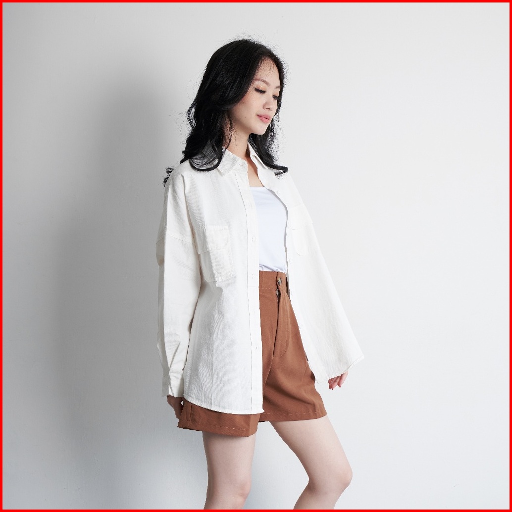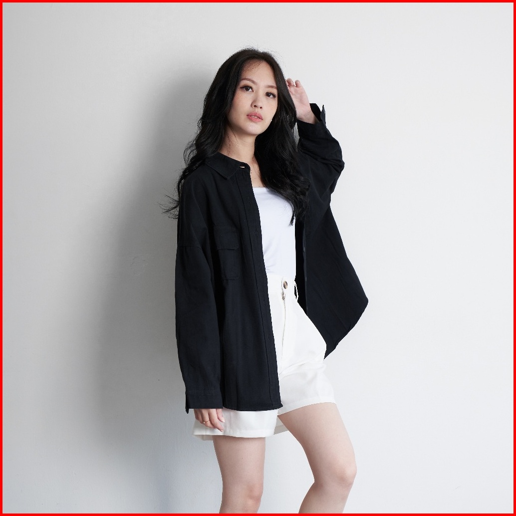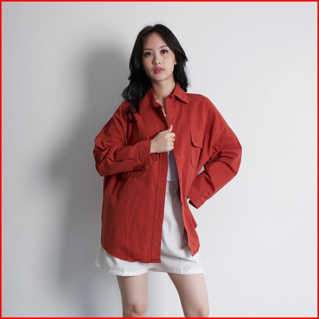 Queentin Kemeja Oversize Wanita 98002 Jeans Wash Polos Lengan Panjang