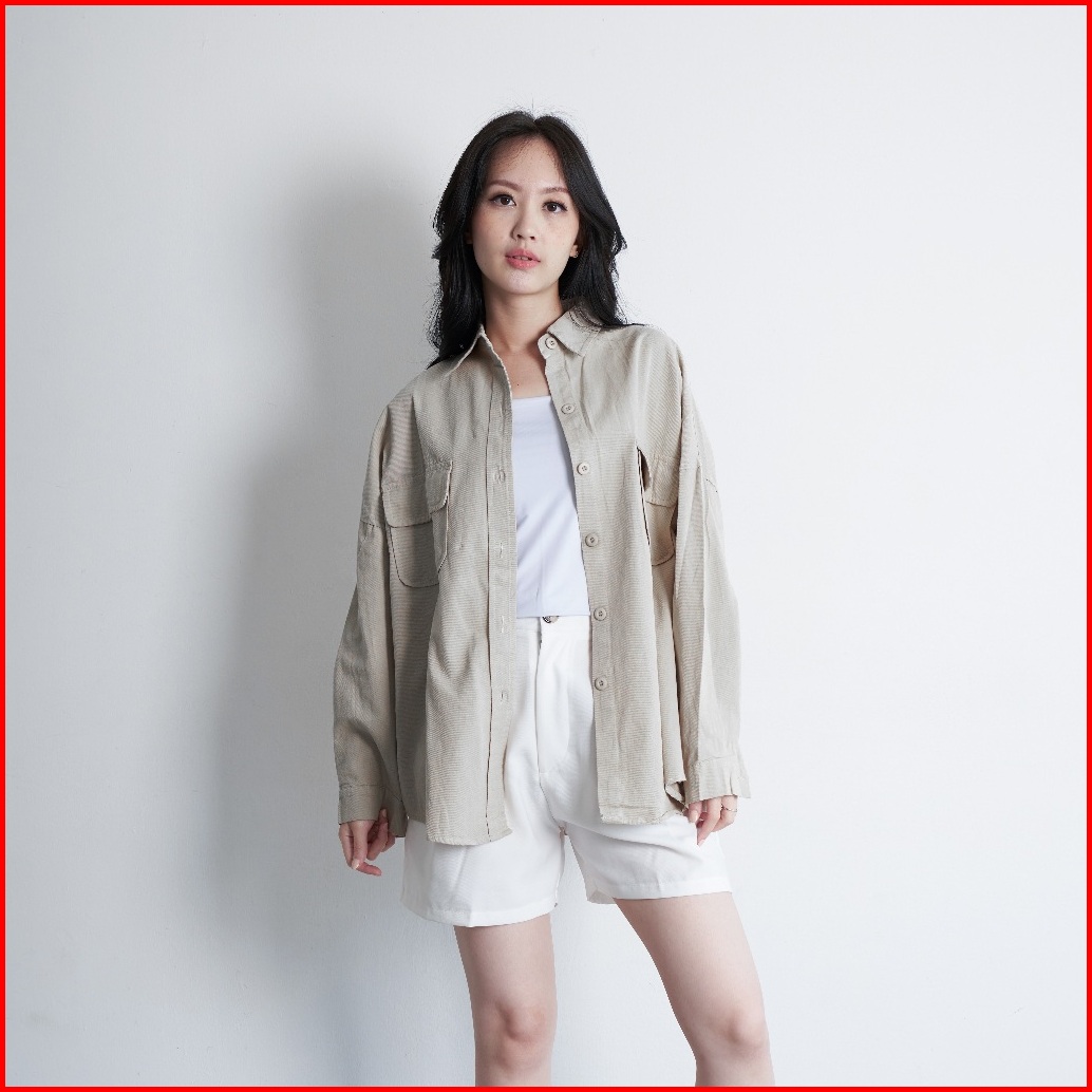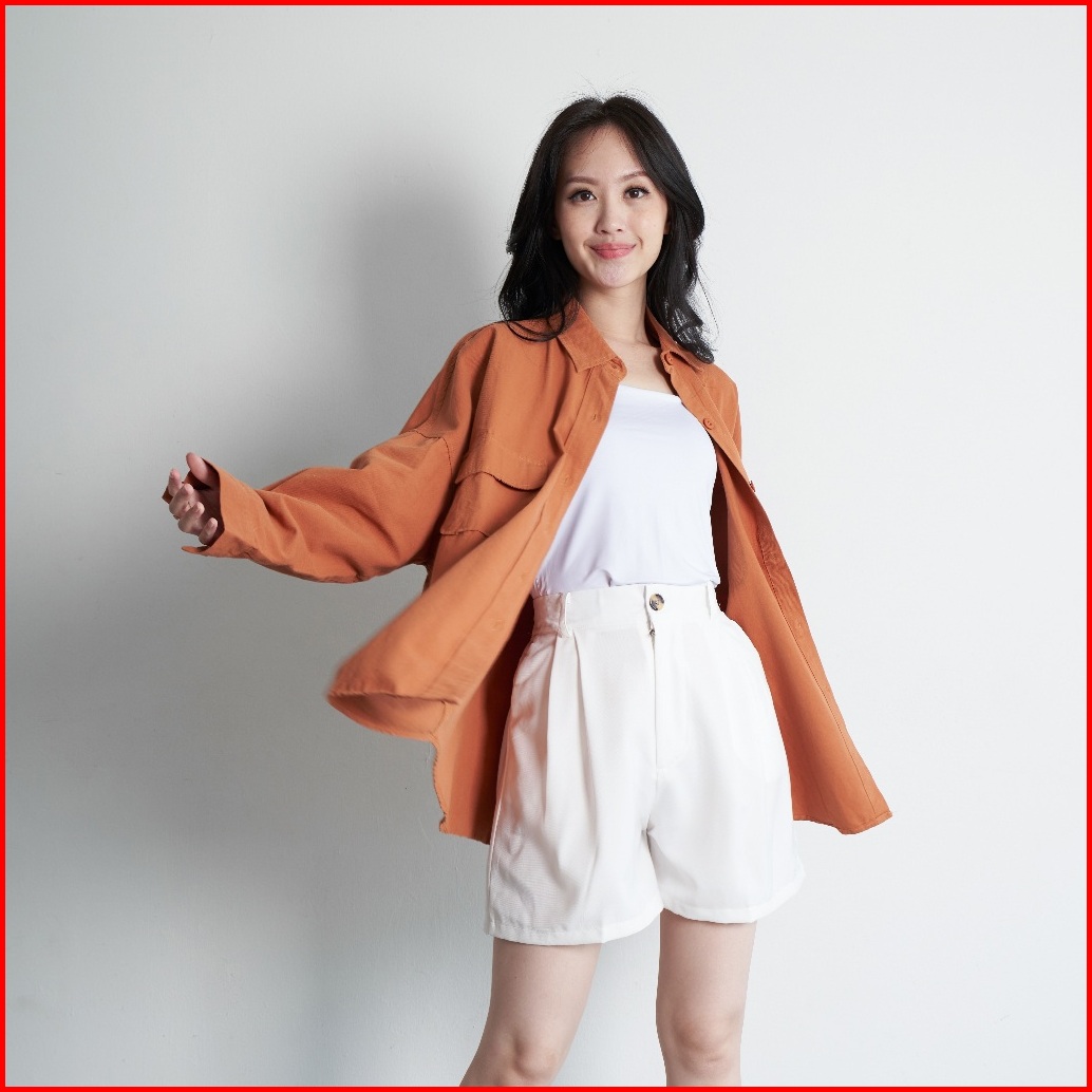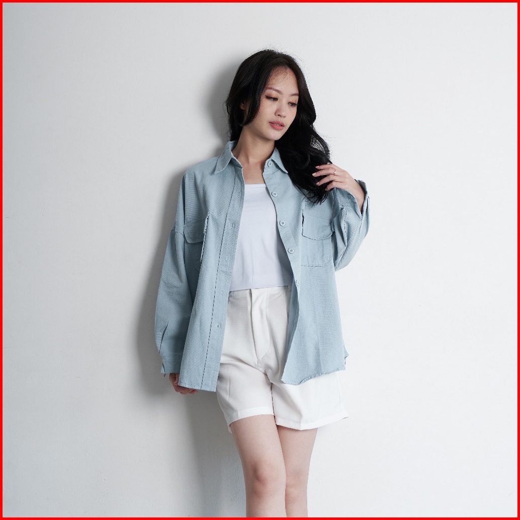 Queentin Kemeja Oversize Wanita 98002 Jeans Wash Polos Lengan Panjang