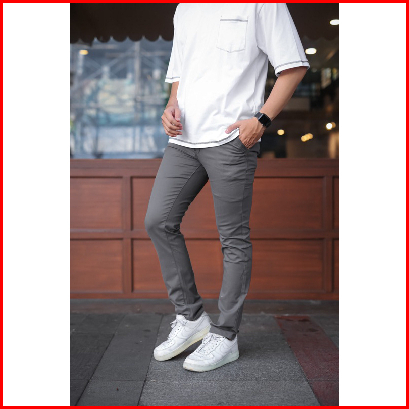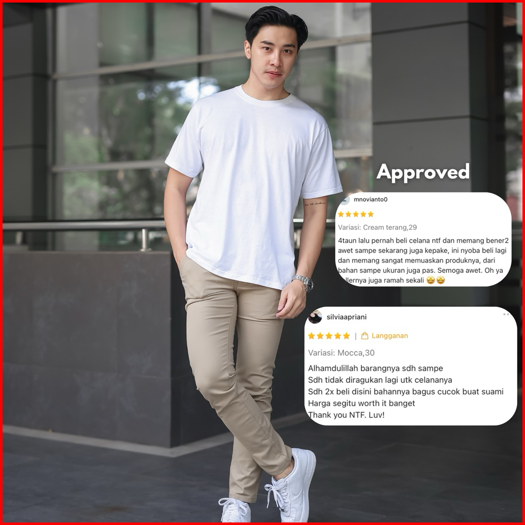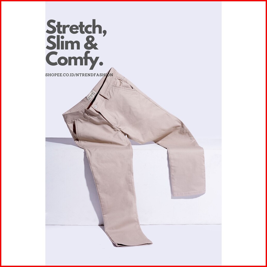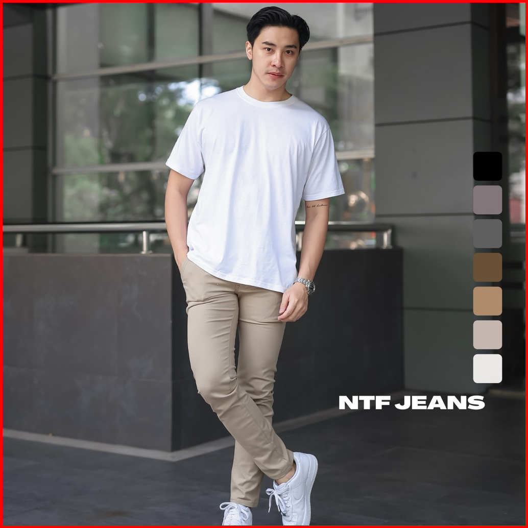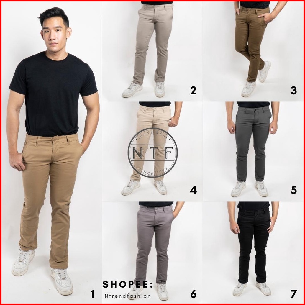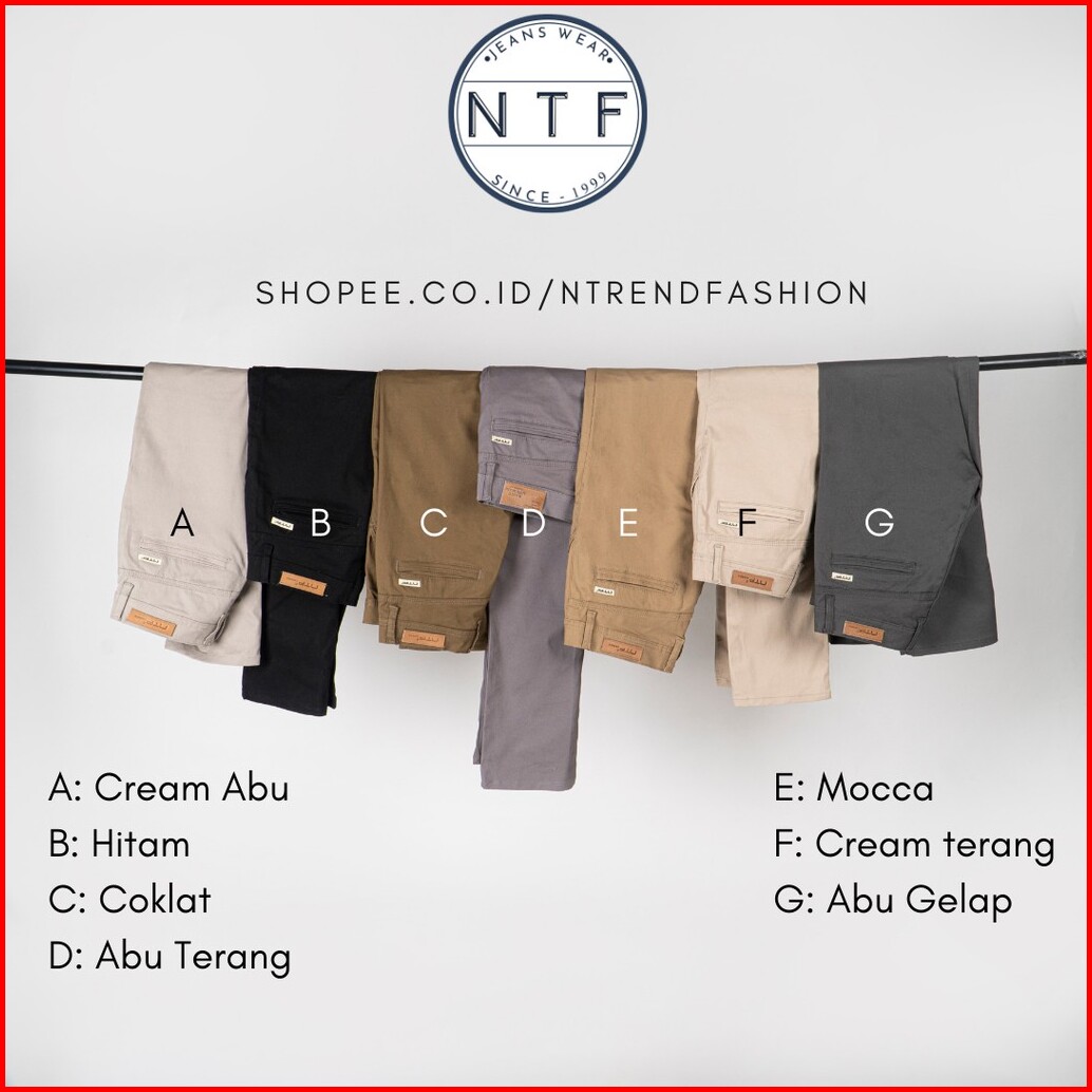 Celana Ntf Chinos Slim Fit Panjang Hitam Abu Terang Abu Gelap Cream Mocca Size 27-38