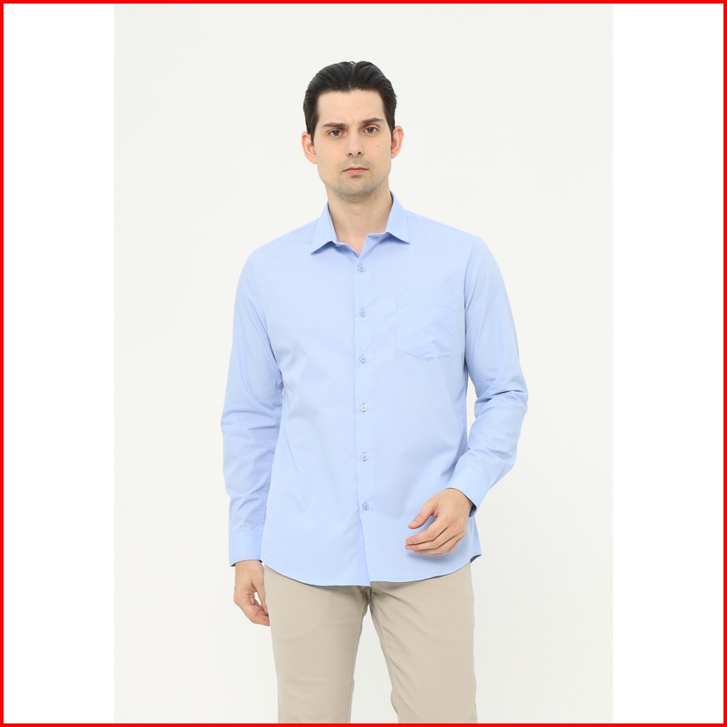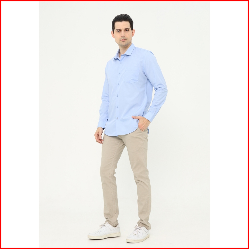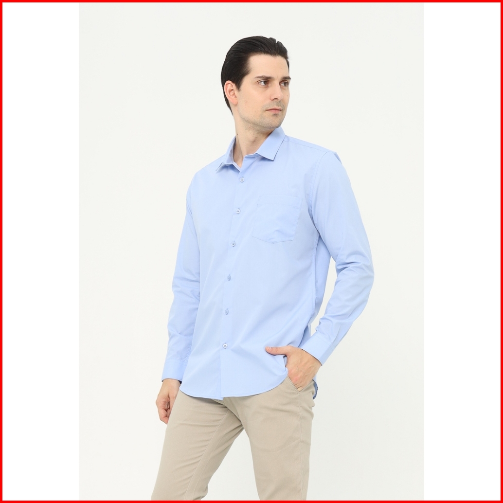 Maginot Kemeja Pria Basic Polos Panjang Light Blue