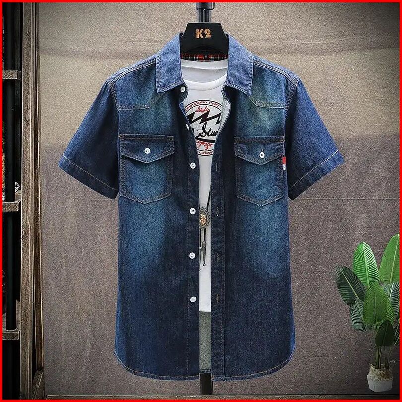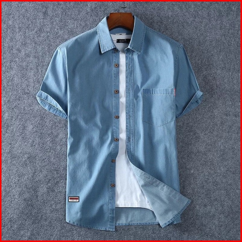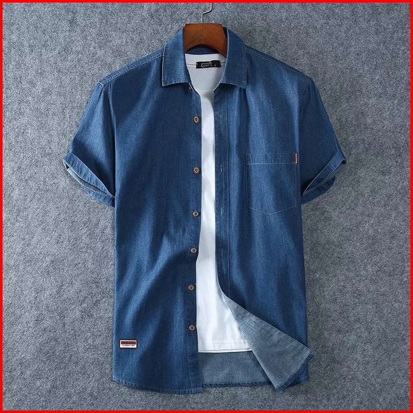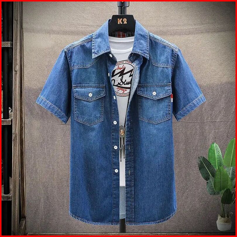 Mr.versus.kemeja Jeans Pria After M-l-xl-xxl Bahan Jeans Wash Original Lengan Pendek.