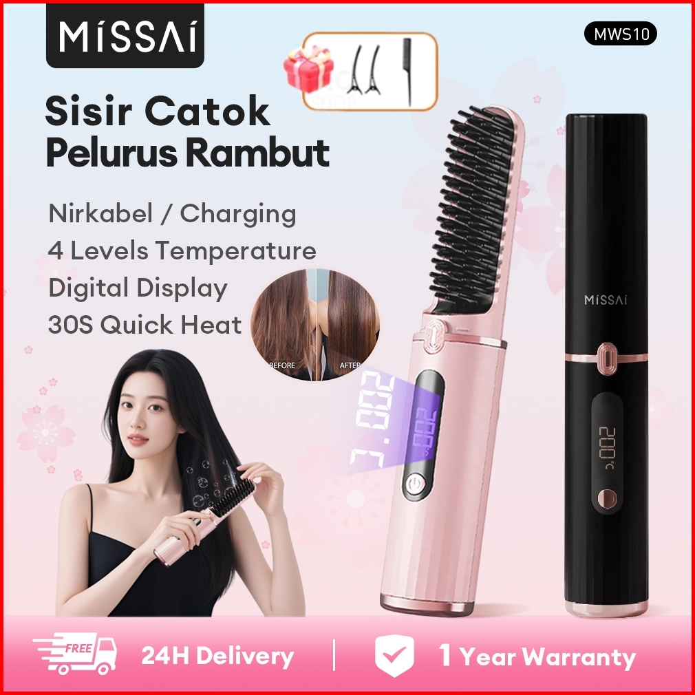 Missai 2 In 1 Sisir Catok Pelurus Rambut Elektrik Tanpa Kabel Comb Sisir Pelurus Rambut Tanpa Kabel Cordless 4 Tingkat T