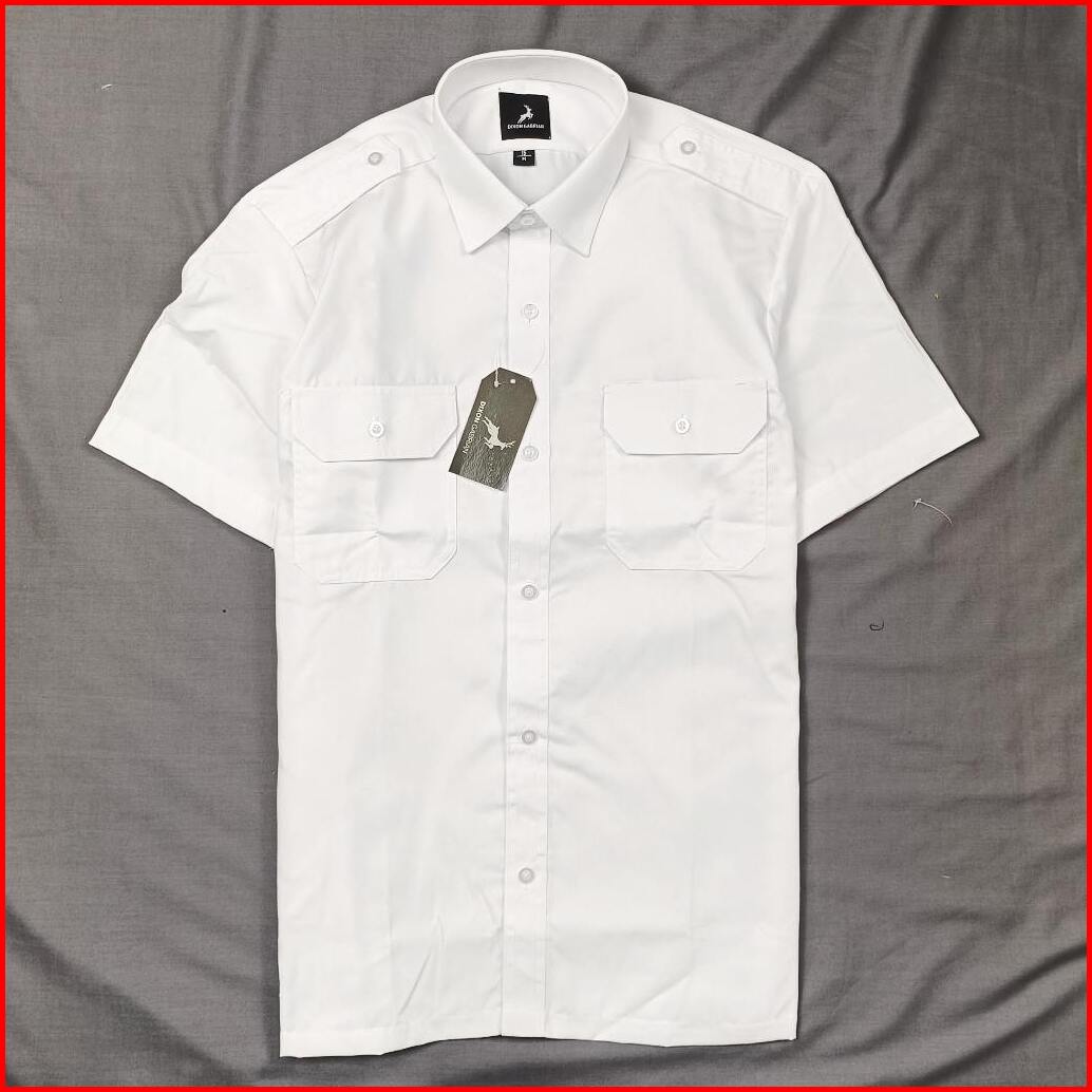 Kemeja Pria Putih Pendek Dinas Pns Pilot Kantong Dua Slimfit Dixon Gabrian