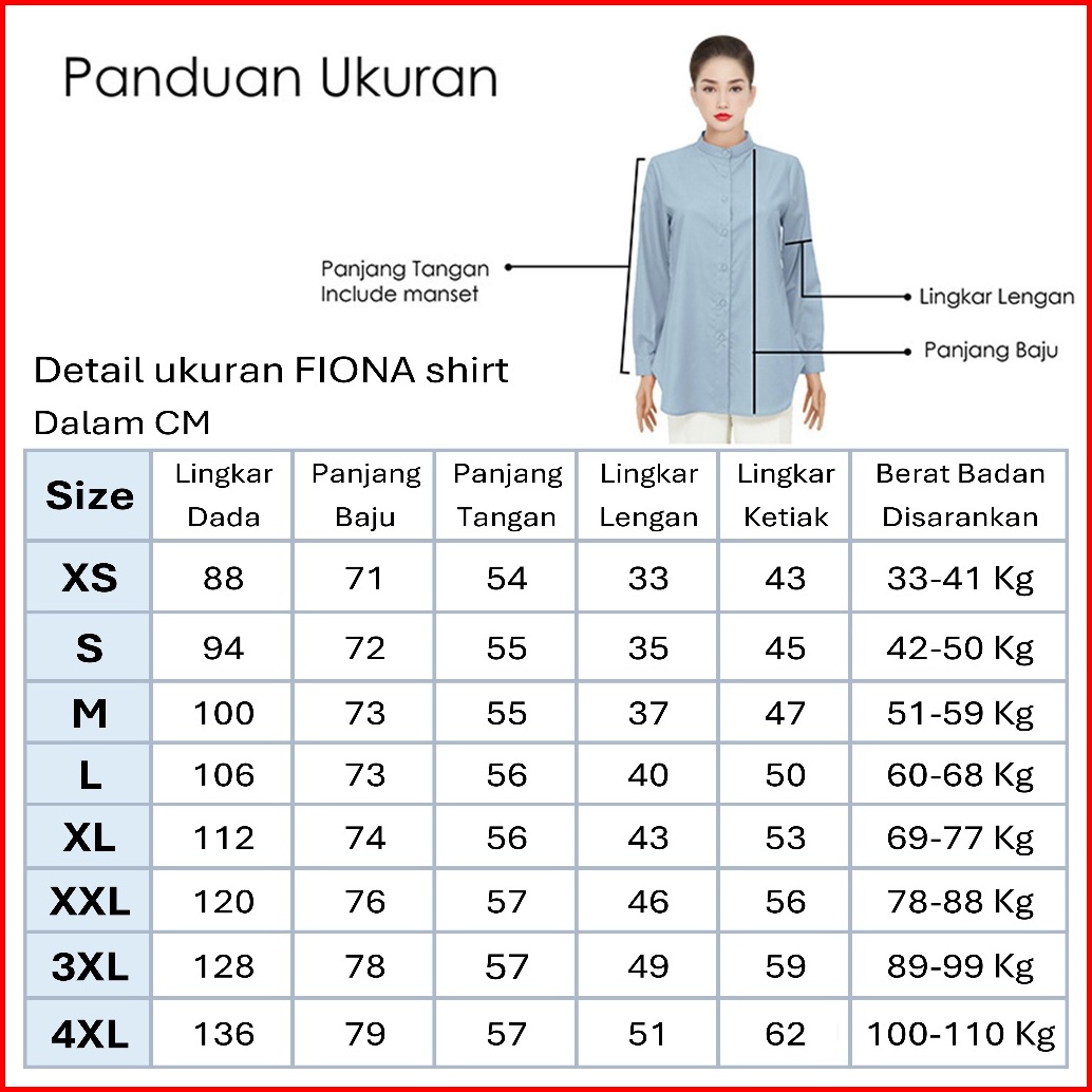 1. Abu Dove, 2. Broken White, 3. Biru Muda, 4.Putih Bersih, 5. Dusty Rose, 6. Grape, 7. Lilac, 8. Hitam, 9. Mustard, 10.Lemon, 11. Marun, 12.Sage, 13. Dusty Pink, 14.Wardah, 15.Navy, 16.Plum, 17. Karamel, 18. Biru Elektrik, 19. Merah, 20.Denim, 21. Mint, 22. Bata, 23. Army, 24. Coksu, 25. Royal Blue