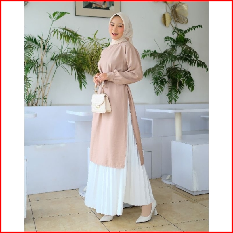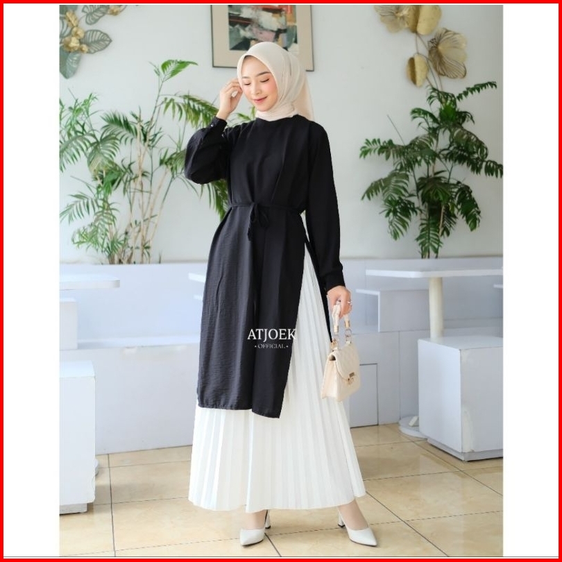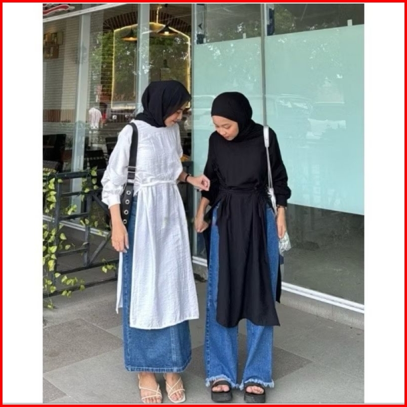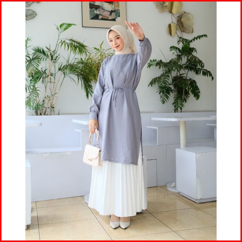 Tasya Tunik - Tunik Polo Linen - Atasan Muslim Wanita - Tunik Tali Premium - Tunik Simple