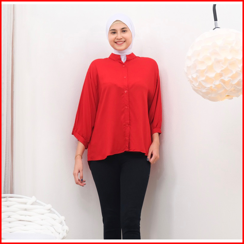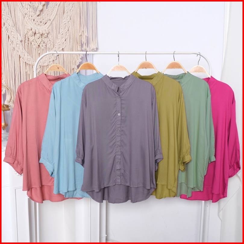 Newladiessa Kemeja Shanghai Rayon Atasan Kemeja Rayon Twill Baju Murah Jumbo Busui Muslimah