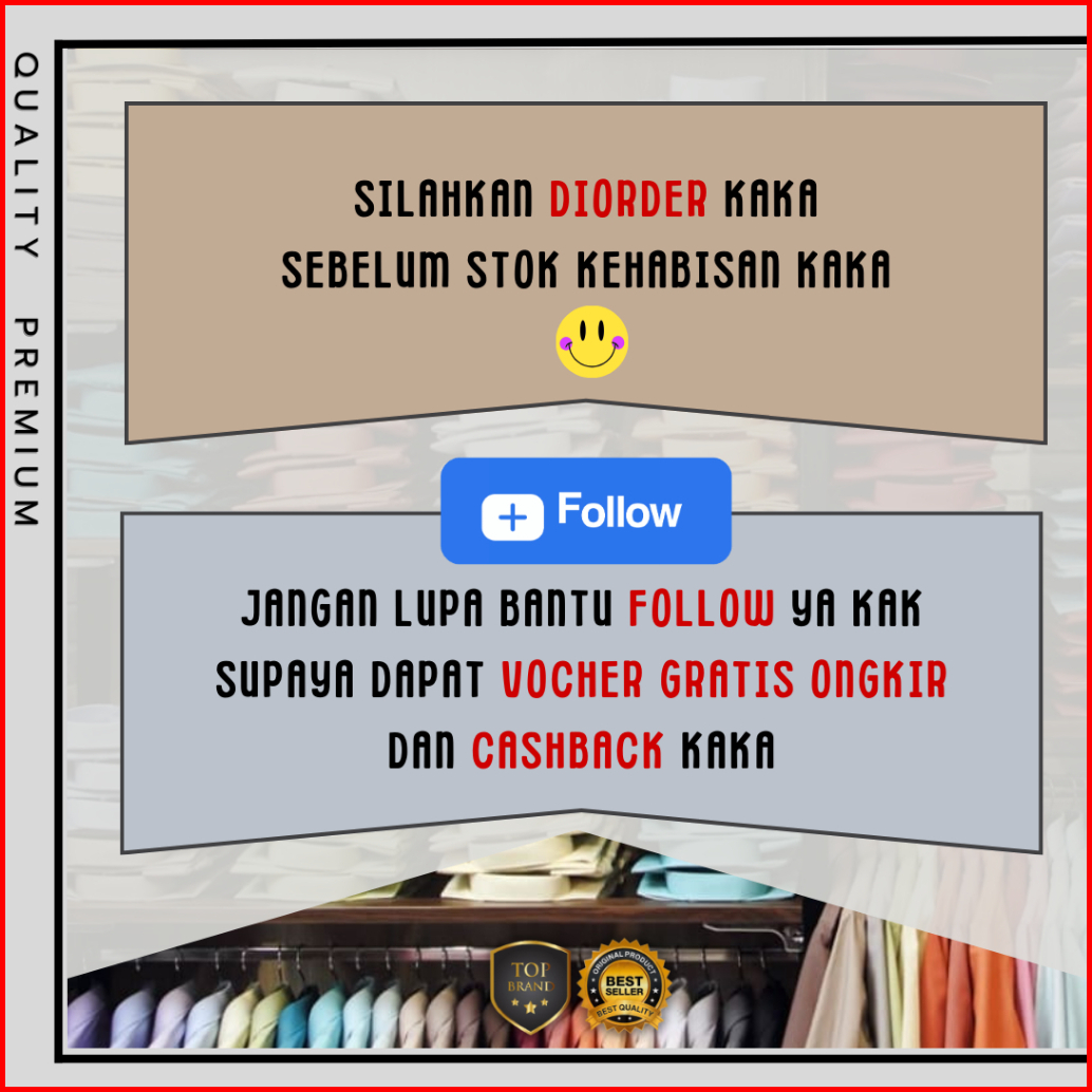 HITAM (REGULAR), PUTIH (REGULAR), Biru DENIM (REGULAR), UNGU 2 (REGULAR), BATA 1 (REGULAR), MARON (REGULAR), KUNING 10 (REGULAR), FANTA 1 (REGULAR), BOTOL (REGULAR), Hijau 12 (REGULAR), COKLAT 7 (REGULAR), HIJAU 2 (REGULAR), MAGENTA (REGULAR), TOSKA (REGULAR), MERAH CABE (REGULAR), TARO (REGULAR), FANTA 2 (REGULAR), SAGE (REGULAR), ABU 2 (SLIMFIT), Biru7/Navy (REGULAR), LILAC (REGULAR), BURGUNDY (REGULAR), HITAM (SLIMFIT), PUTIH (SLIMFIT), RANDOM