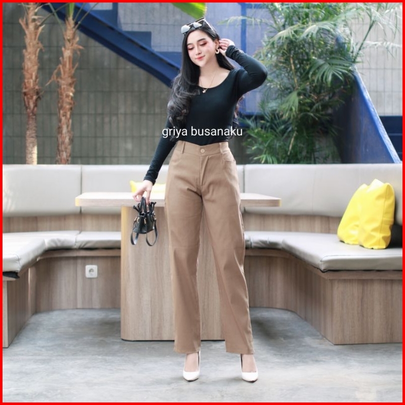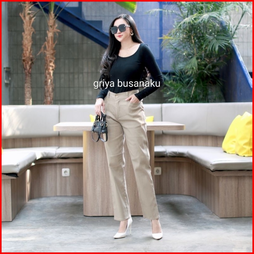 Celana Basic Panjang Wanita Formal Kasual Katun Twill Combed