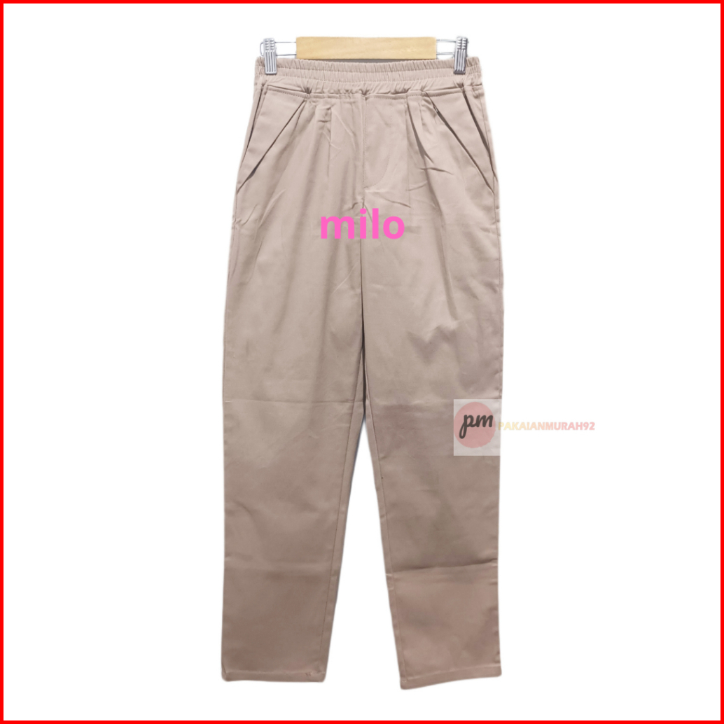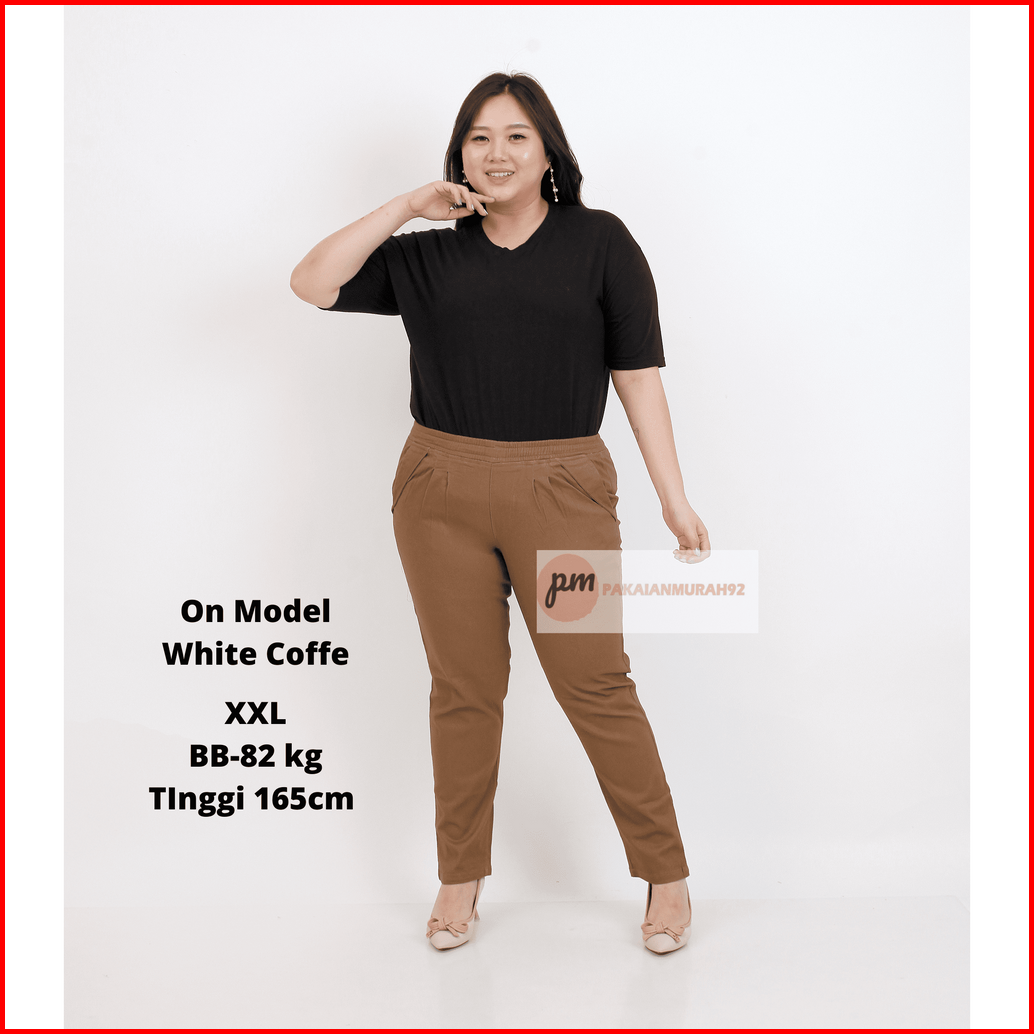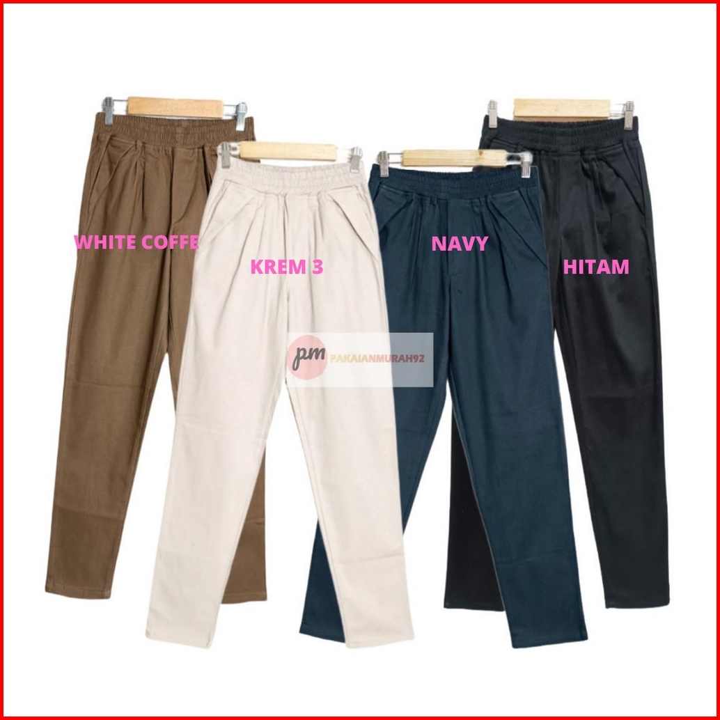 Celana Kerja Pinggang Full Karet Wanita Celana Katun Twill Stretch Wanita Celana Big Size Wanita Ukuran All Size-xxxxl B