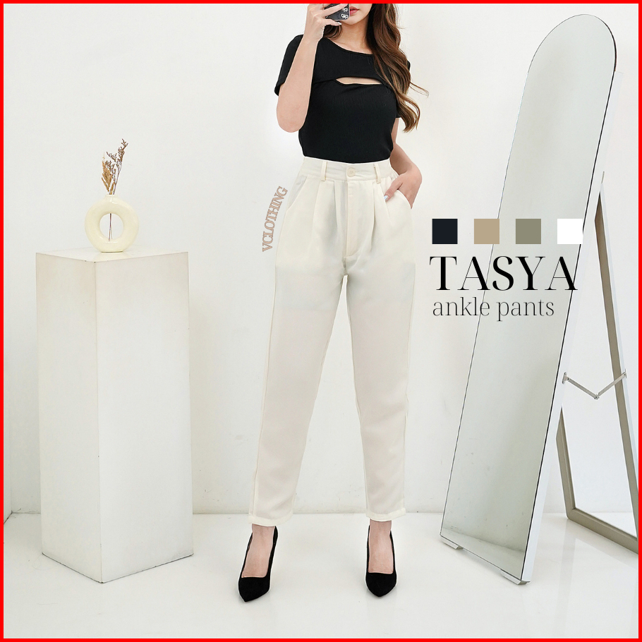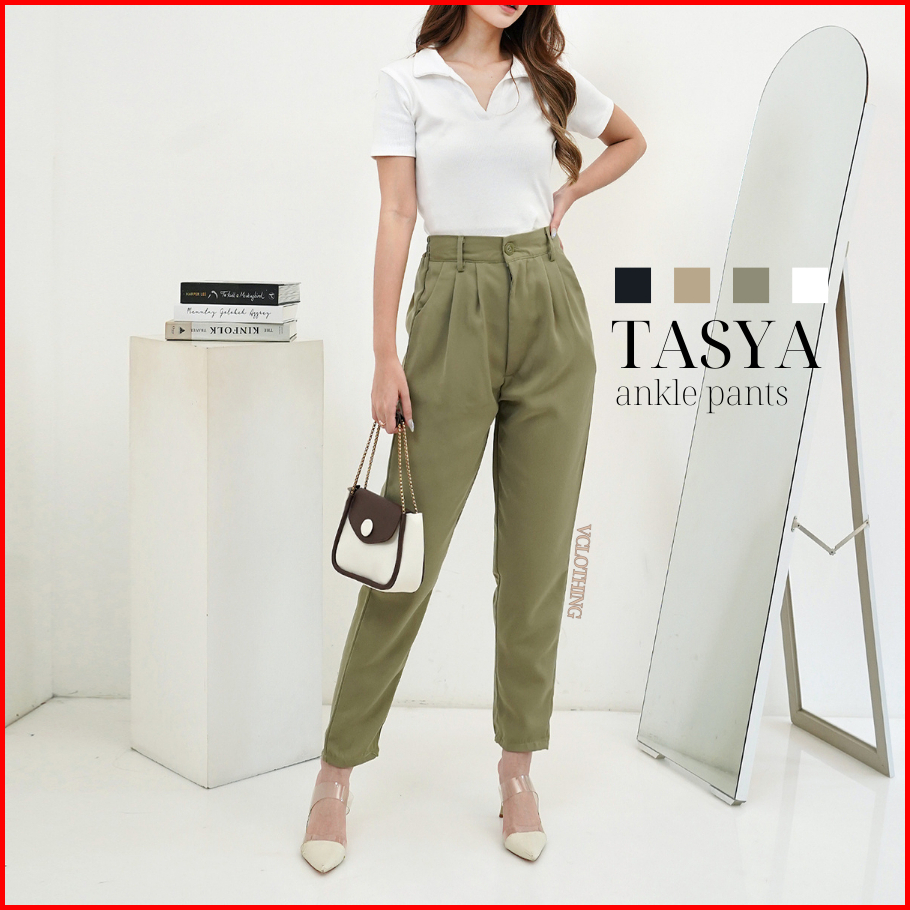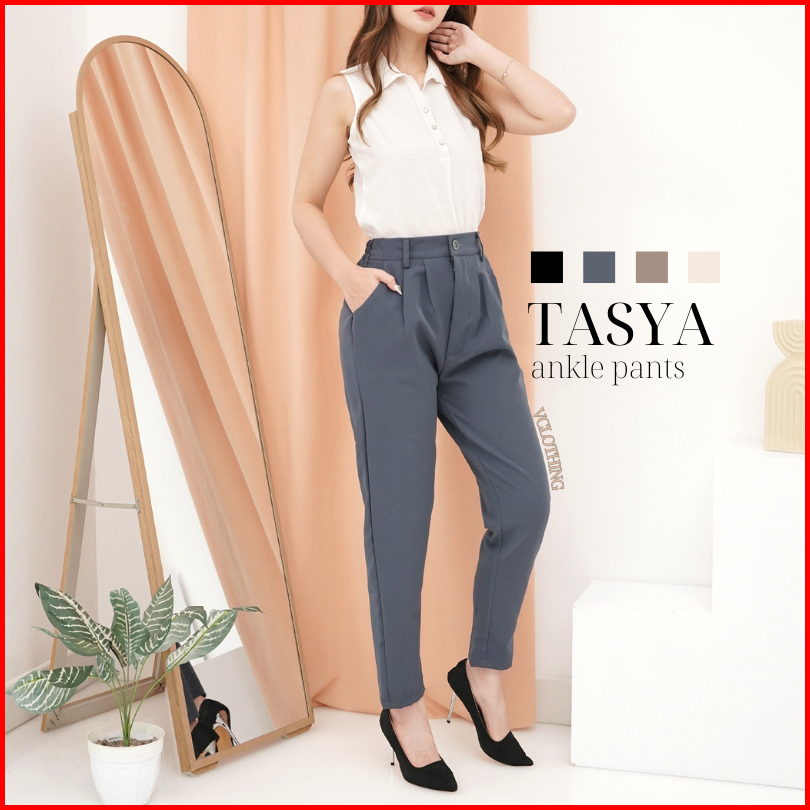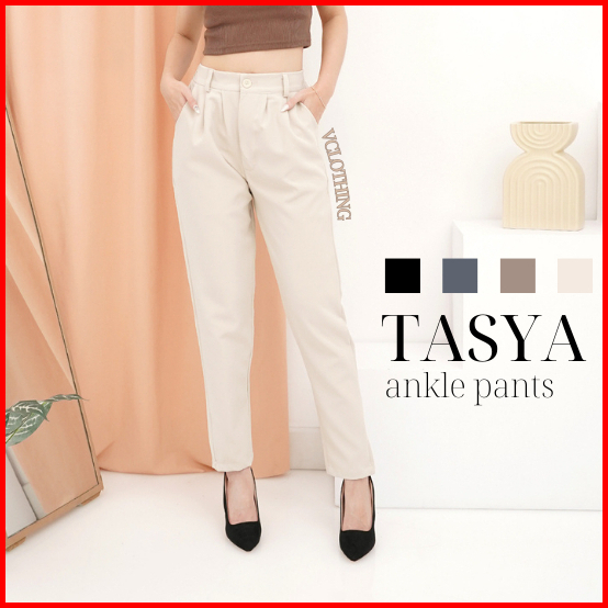 Vclothing Ankle Loose Pants Wanita Highwaist Baggy Trousers Casual Celana Kantor Kuliah