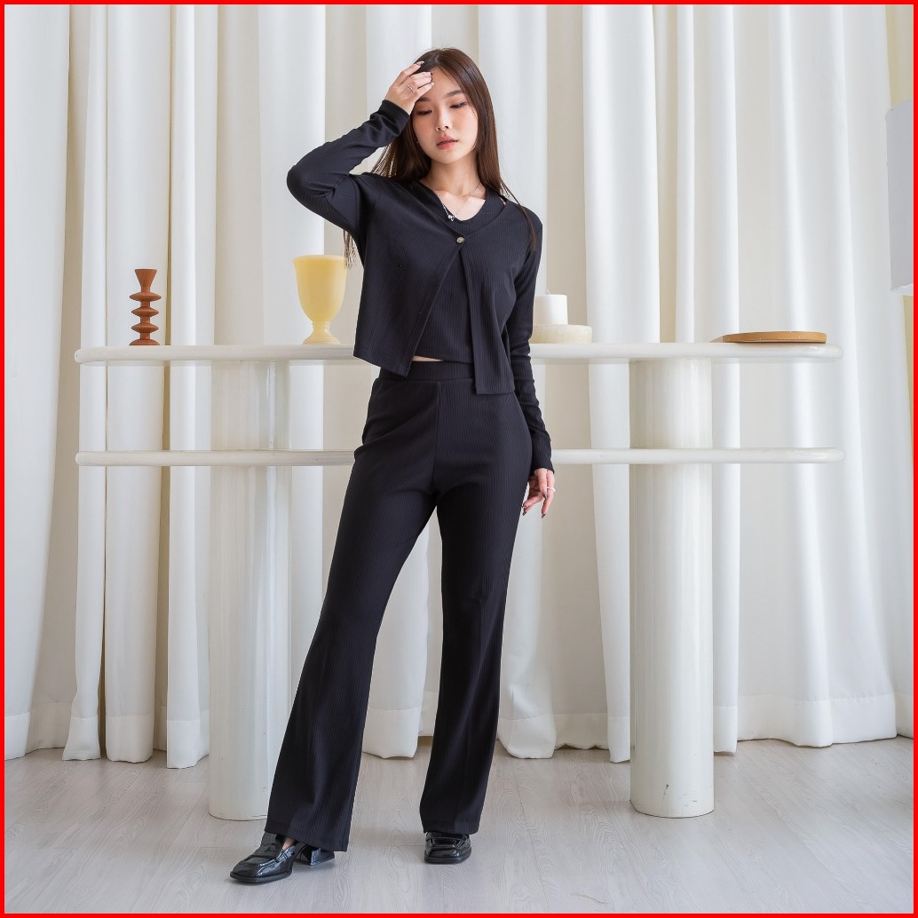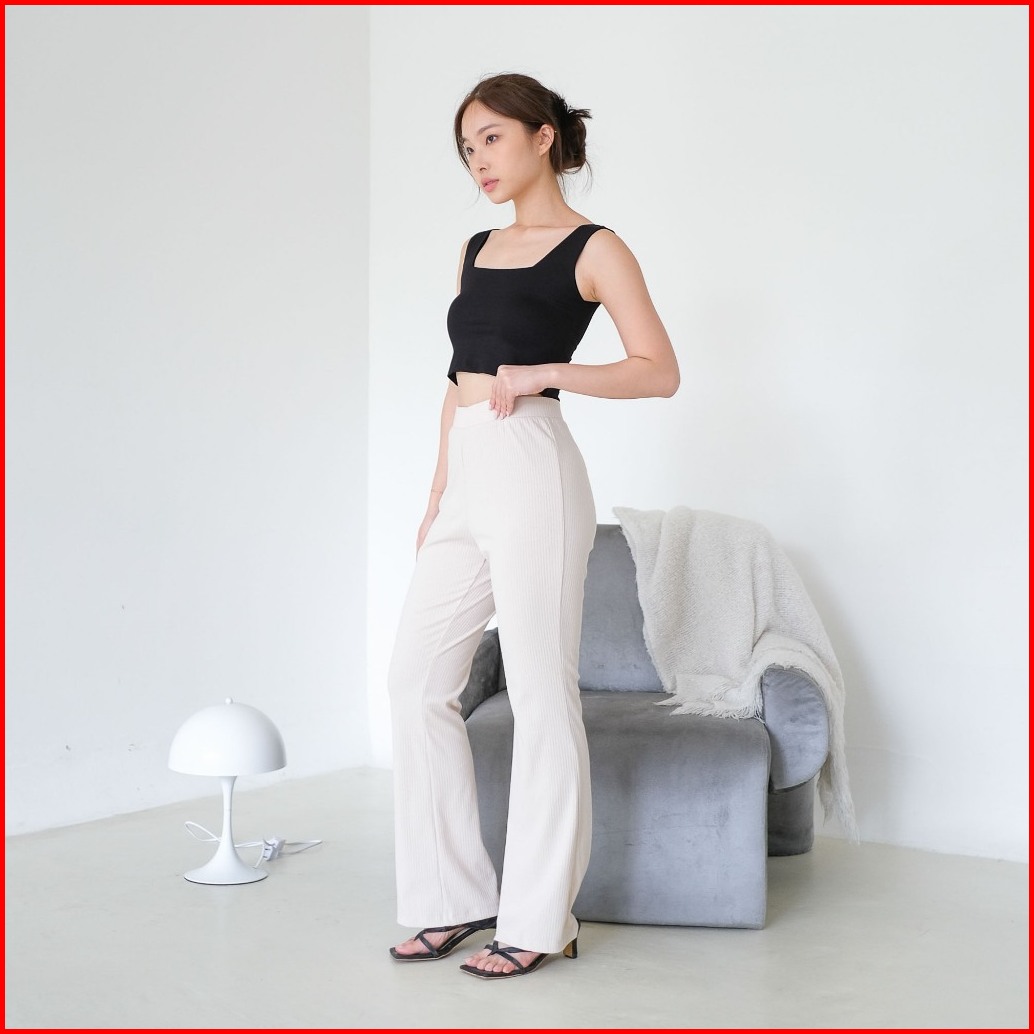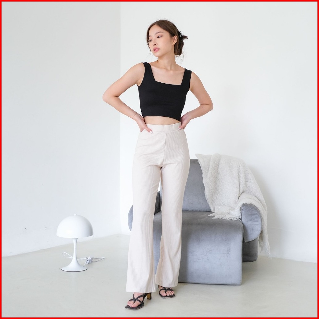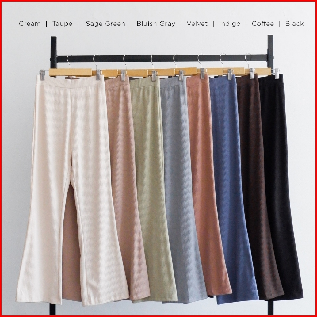 Isla Ran Pants Basic - Rib Knit Cotton - Celana Panjang Polos Textured - Corduroy - Cutbray Flares