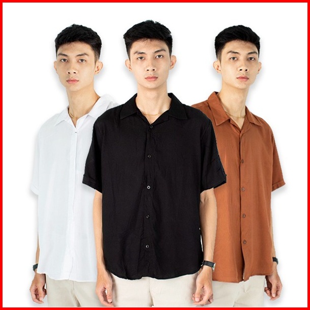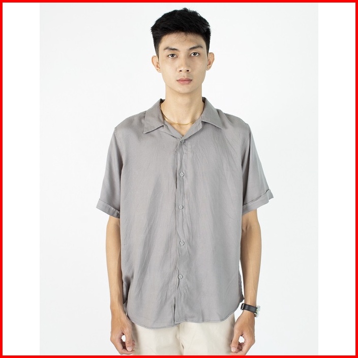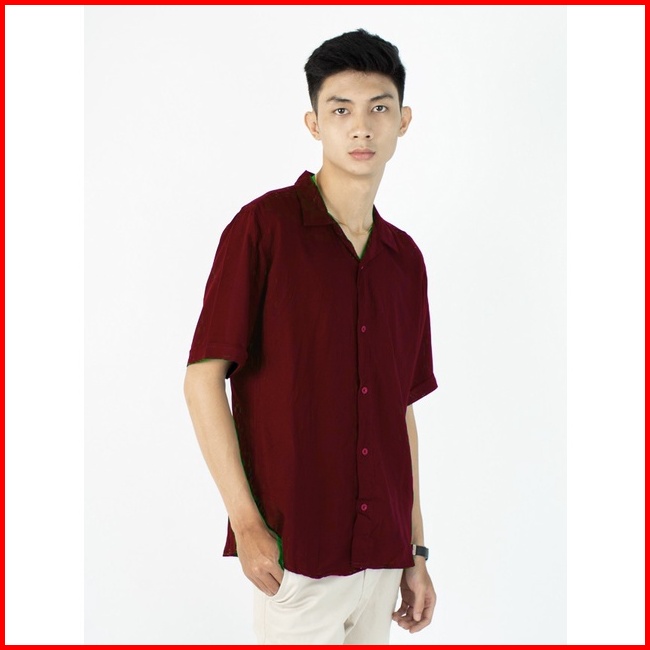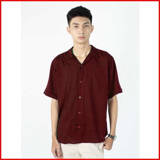 Fortklass Rayon Polos Maroon Kemeja Polos Pria Lengan Pendek Kasual