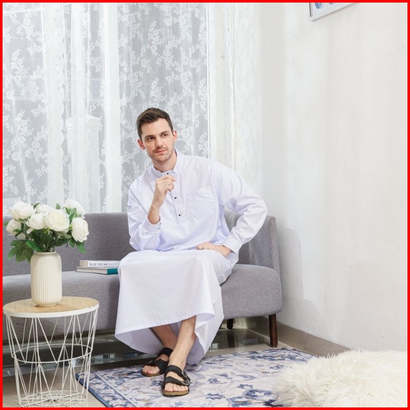 Family Muslim - Jubah Gamis Pria Usia Mulai 14 Tahun Dewasa Lengan Panjang Madani Navy