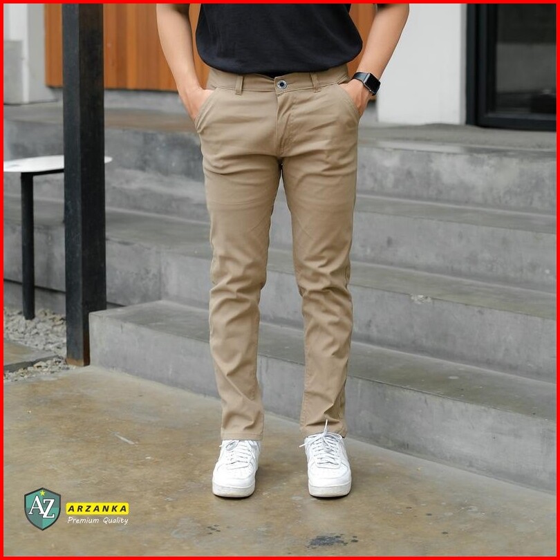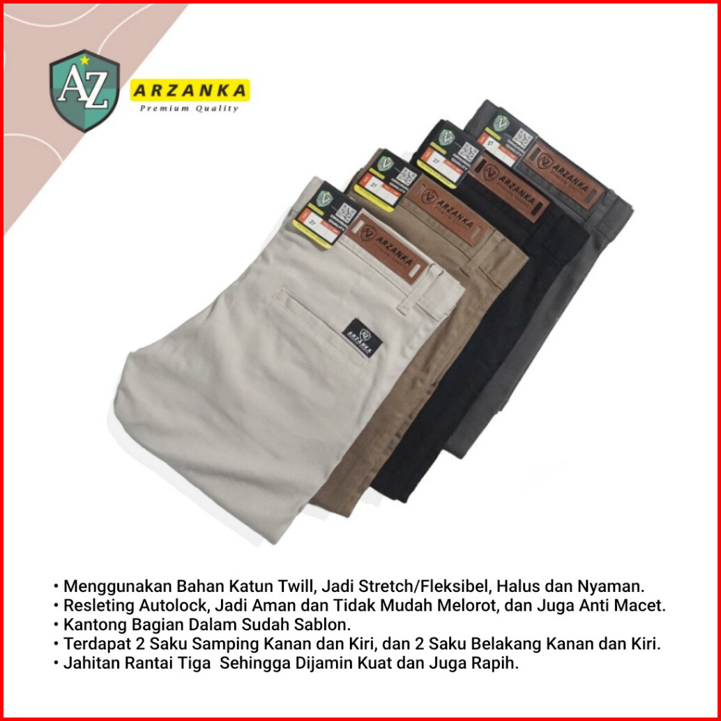 Arzanka - Celana Chino Panjang Polos Original Pria Slimfit