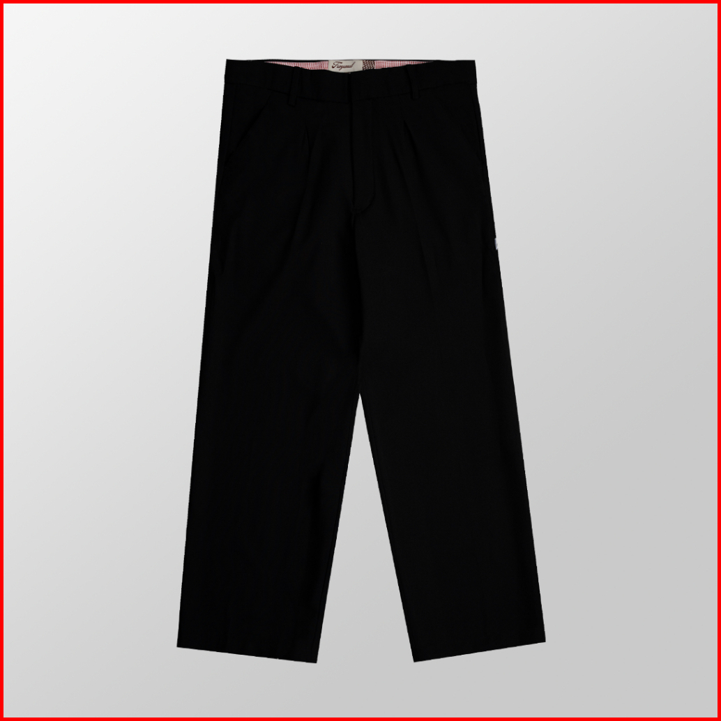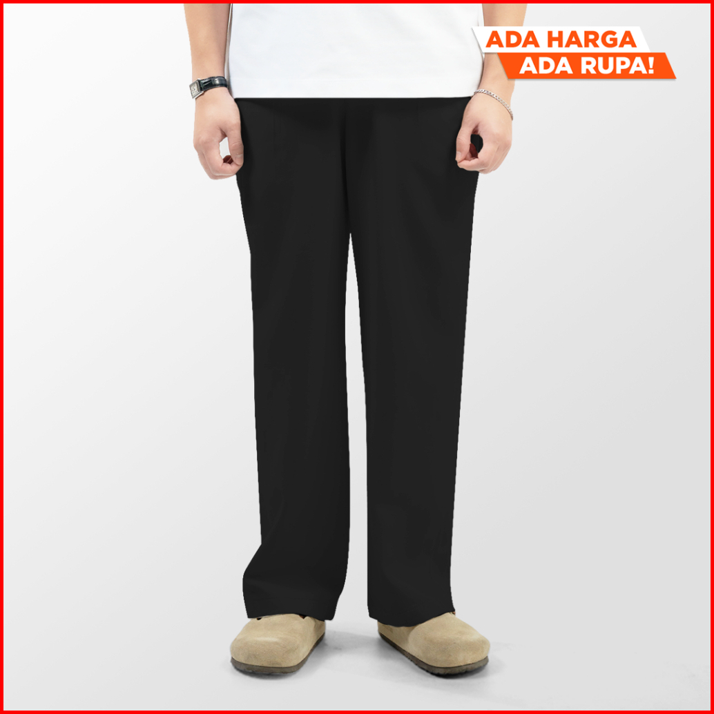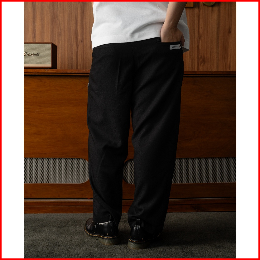 Froyemul Relaxed Pants Black Celana Bahan Pria Wide Loose Fit