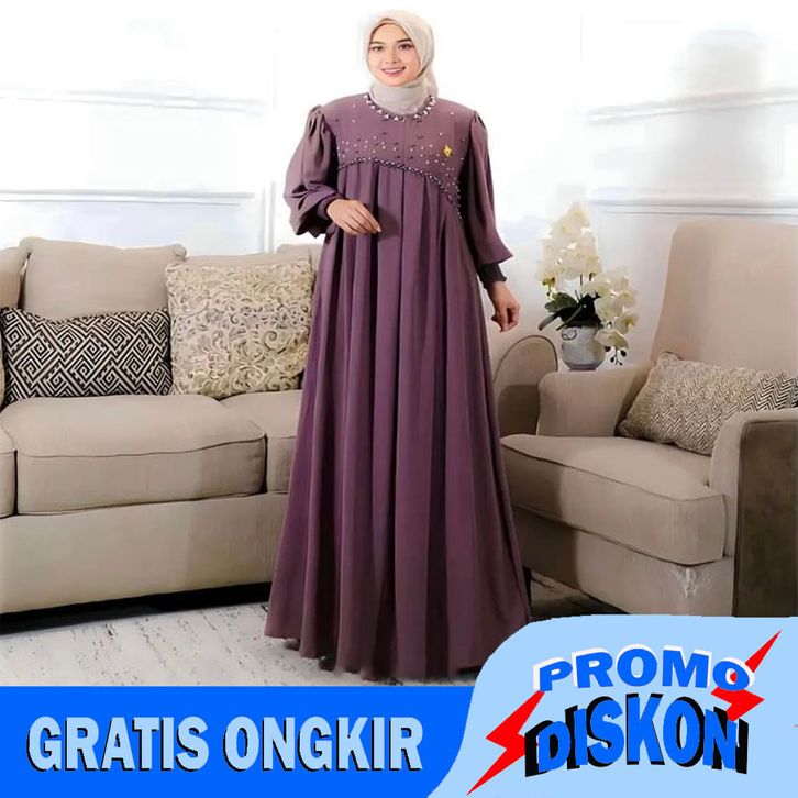 BURSA DRESS Crinkle Airflow Premium Gamis Kringkel Kombinasi Payet Mutiara Gamis Terbaru Elegan Simple Mewah Gamis Payet