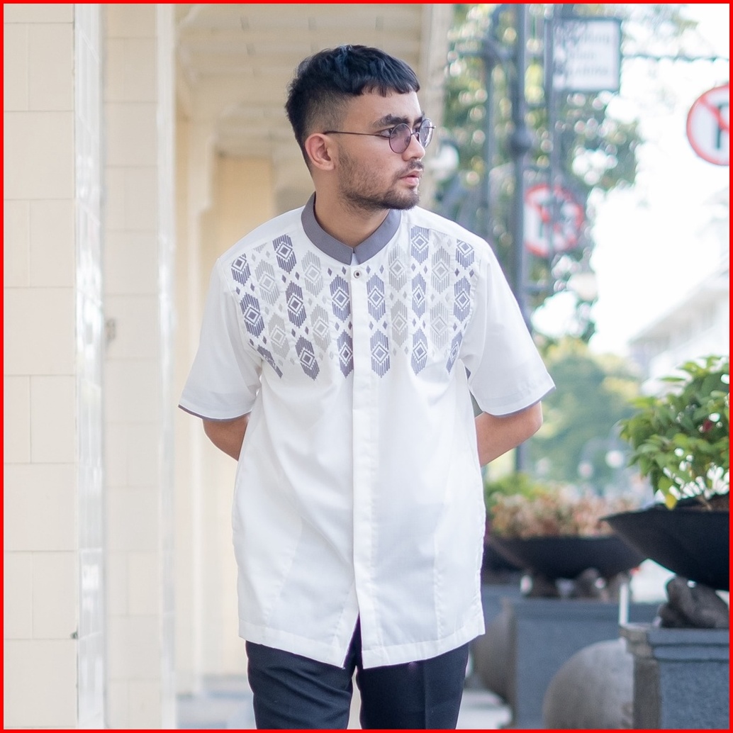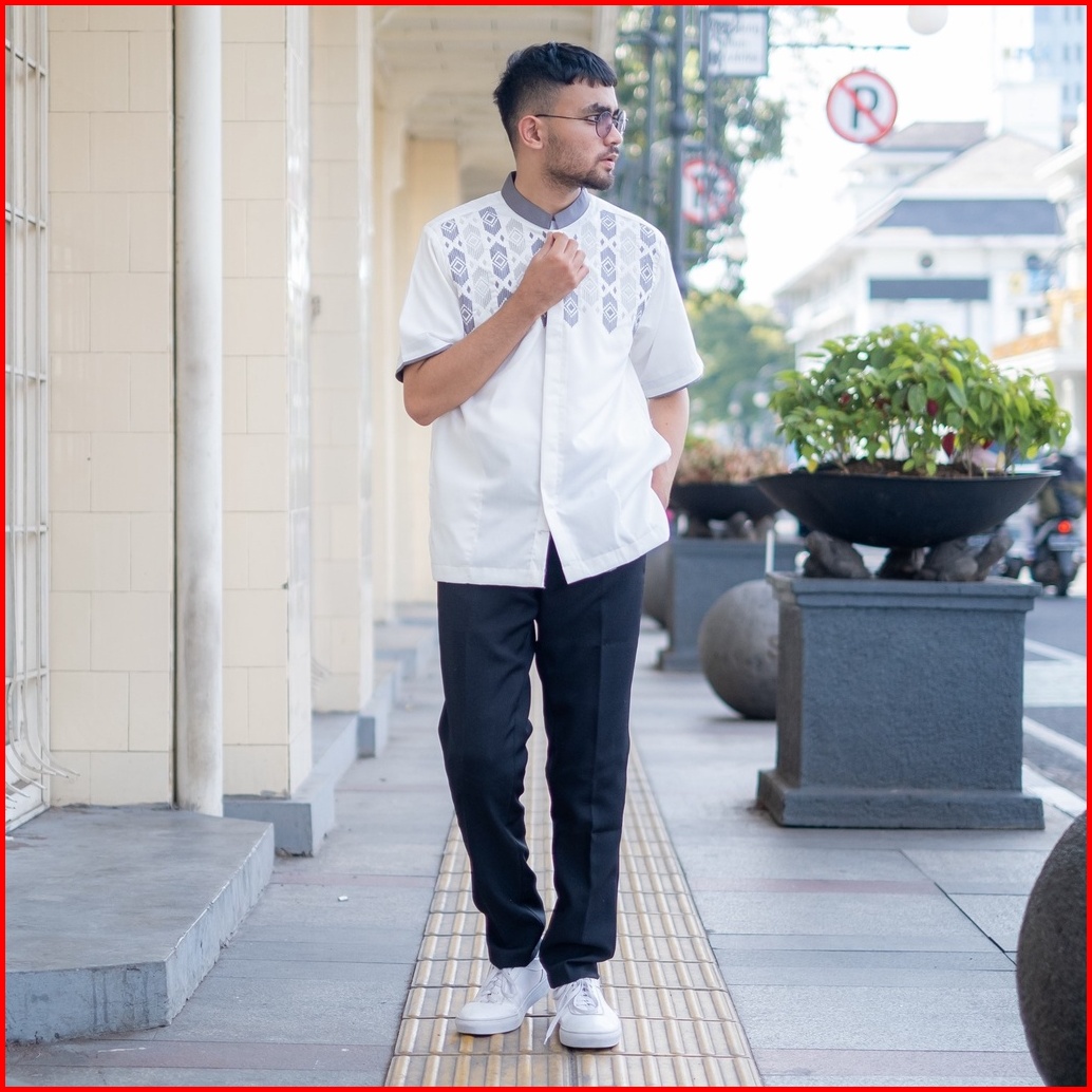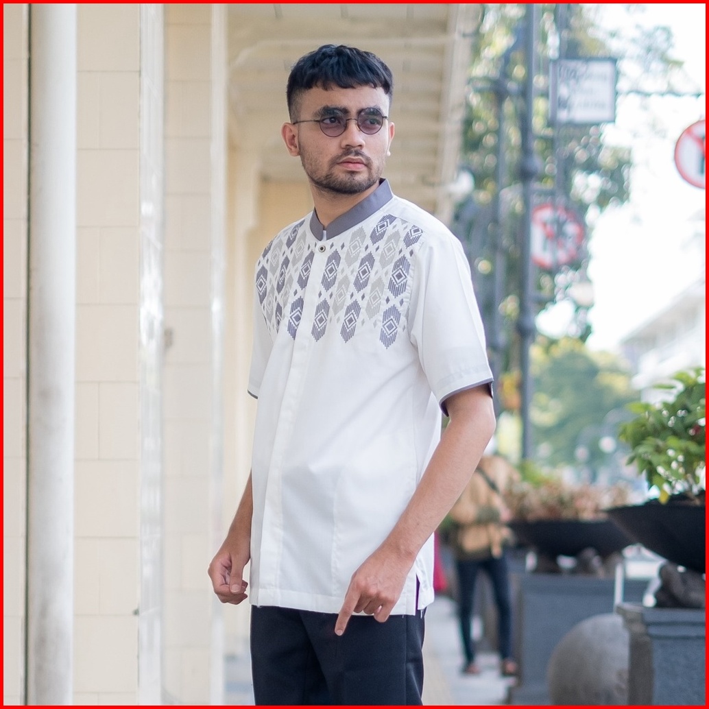 Baju Kemeja Koko Muslim Pria Dewasa Lengan Pendek Putih Katun Alkinan Akt038