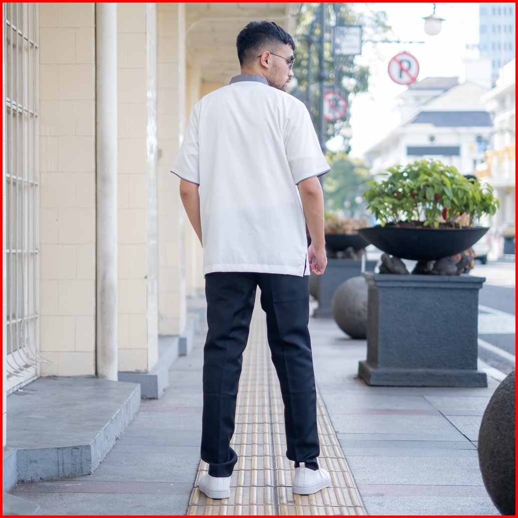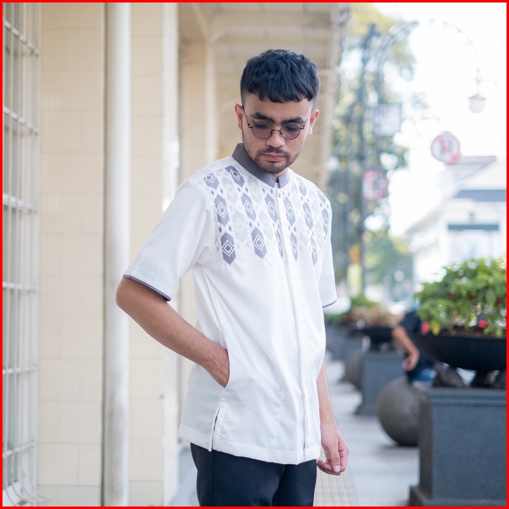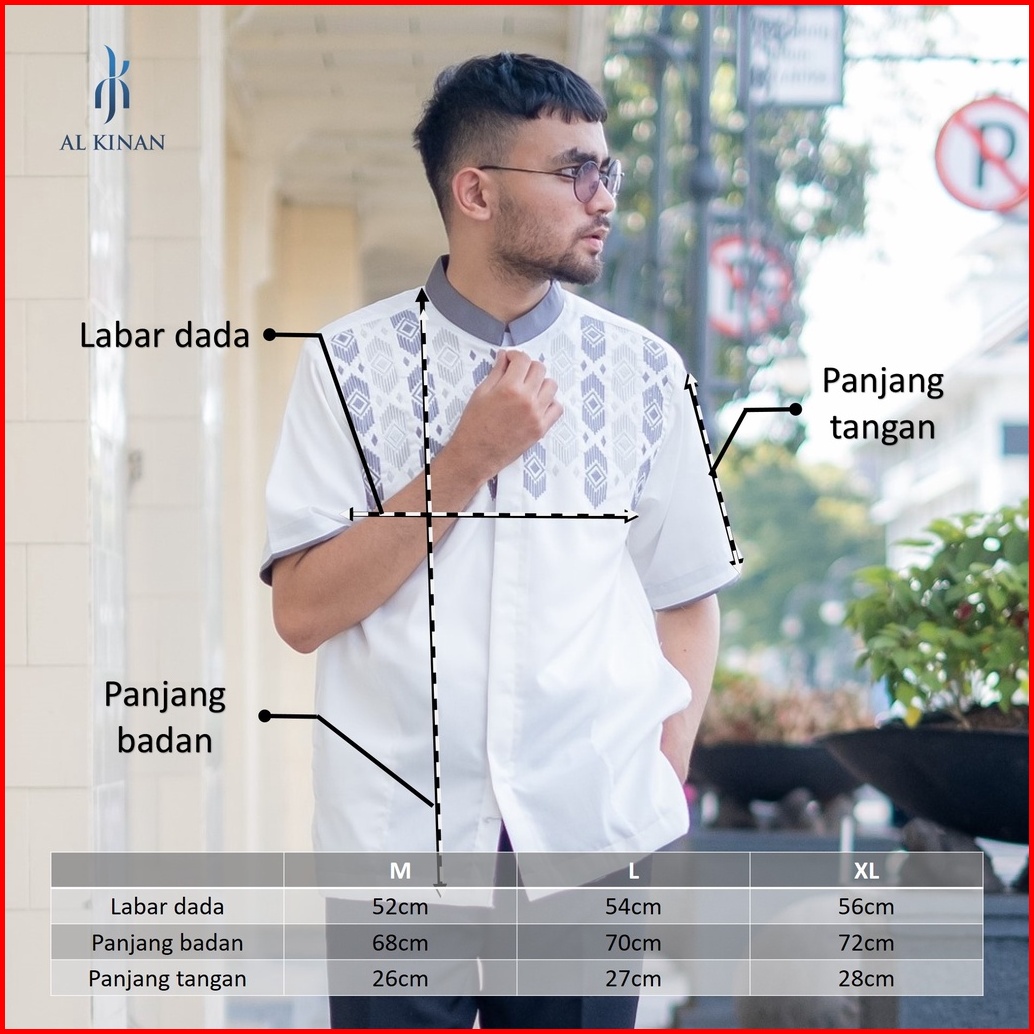 Baju Kemeja Koko Muslim Pria Dewasa Lengan Pendek Putih Katun Alkinan Akt038