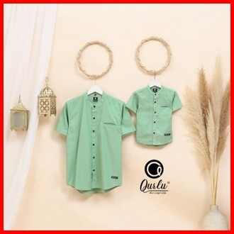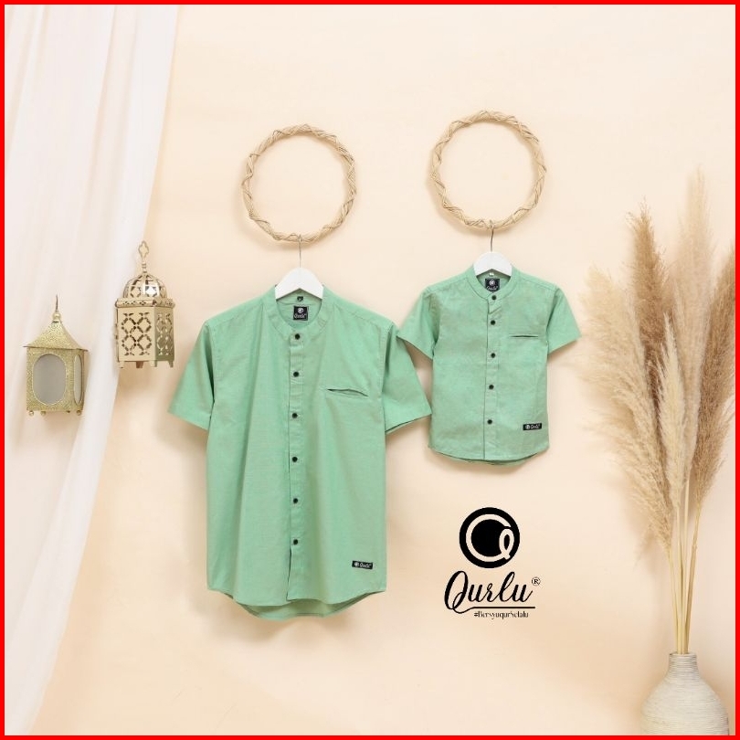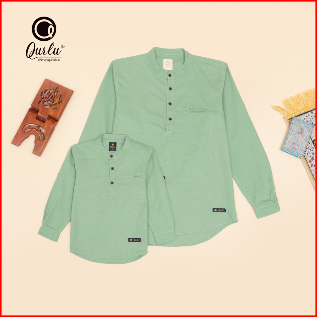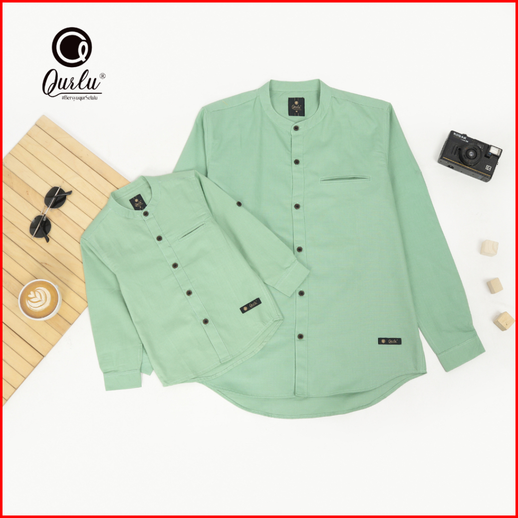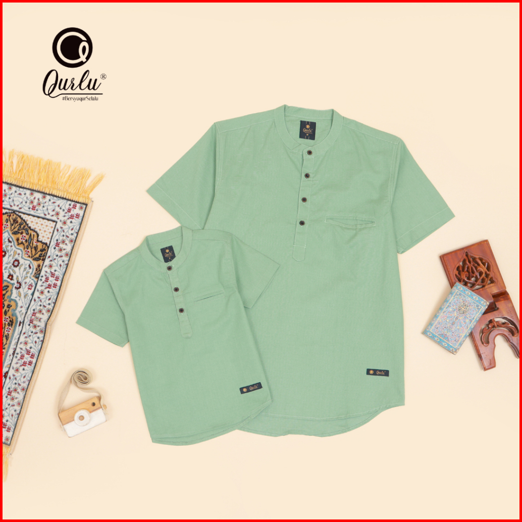 Qurlu - Kemeja Koko Dewasa Anak Warna Sage Green Baju Couple Ayah Dan Anak Laki-laki Baju Koko Pria