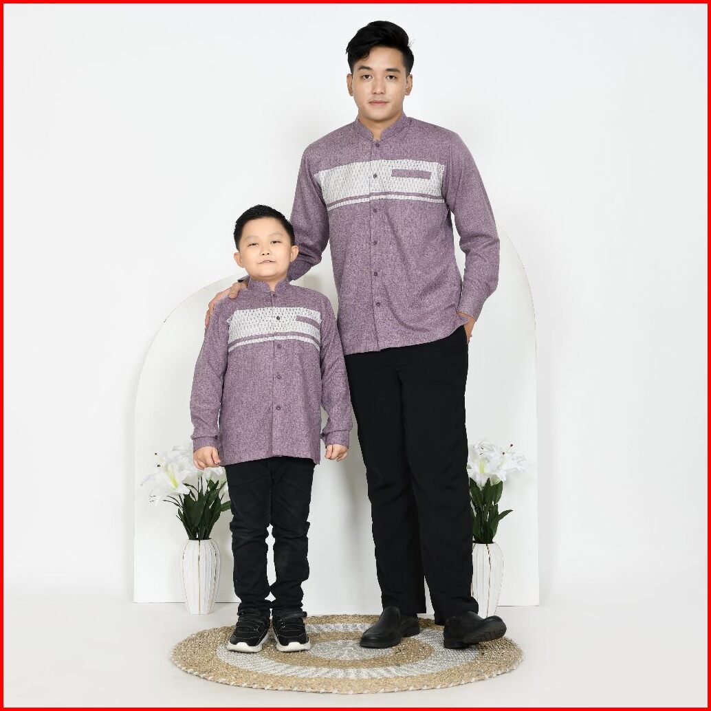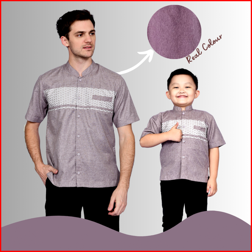 Koko Couple Ayah Dan Anak Warna Soft Ungu Mauve Motif Songket Baru
