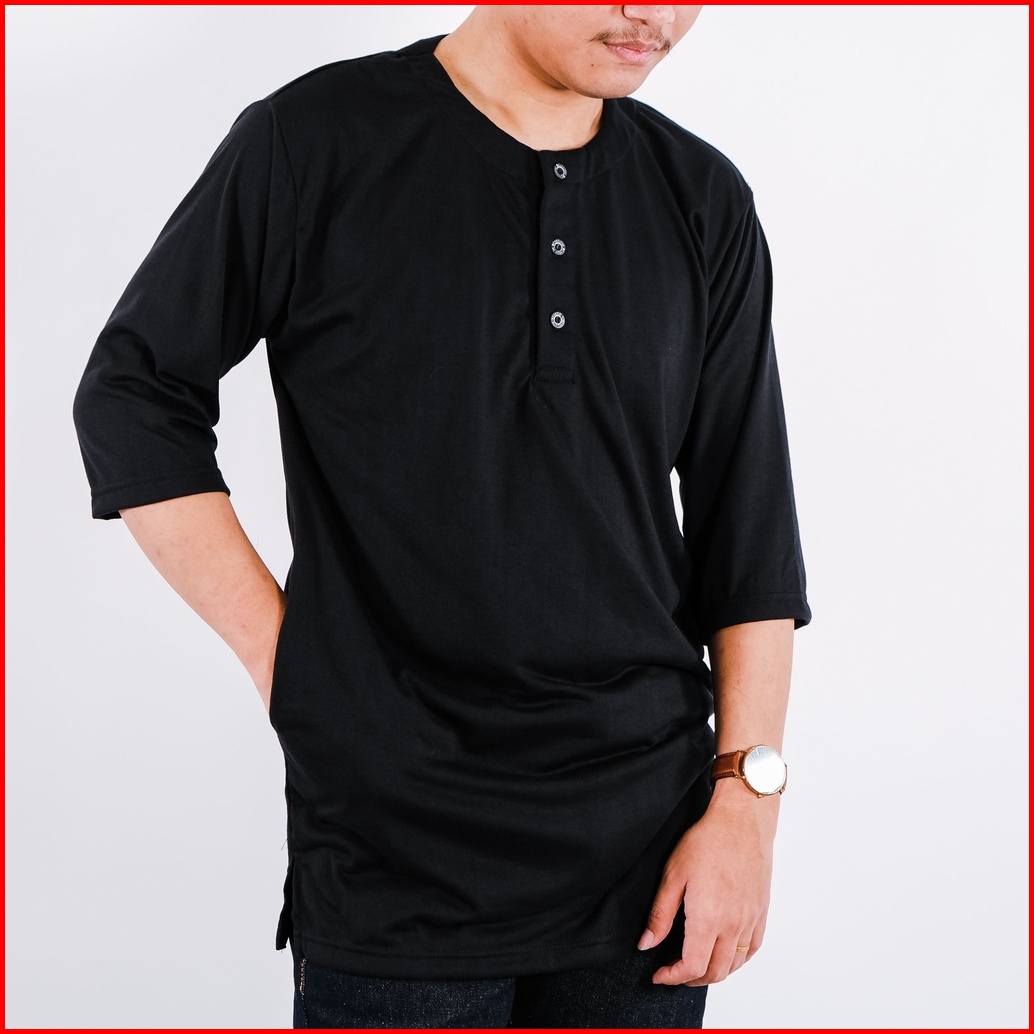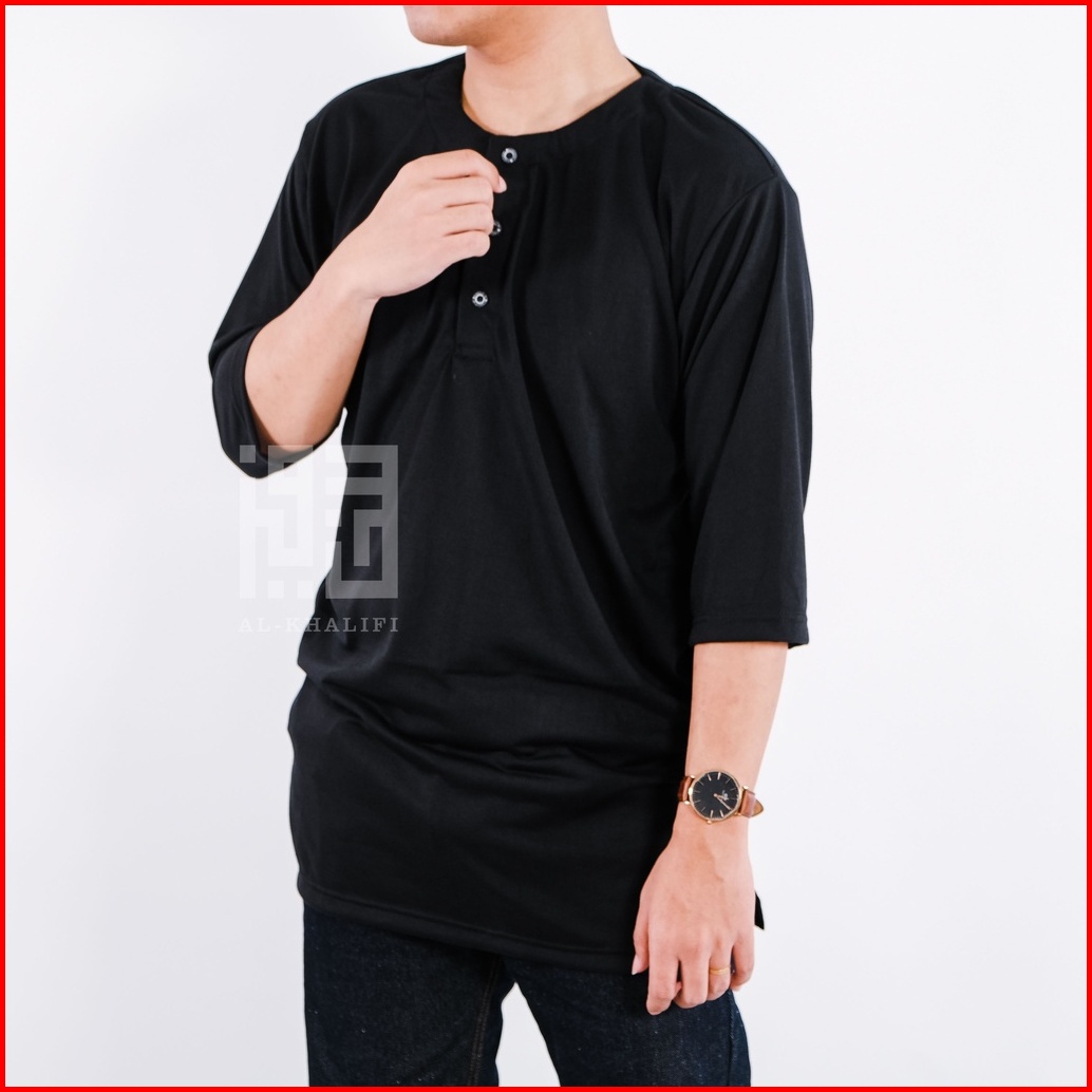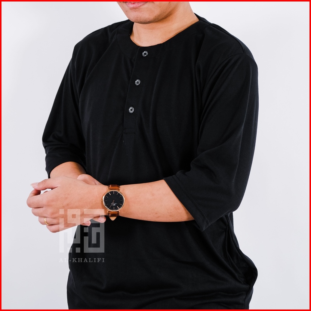 Al-khalifi - Koko Kurta Pria Baju Muslim Lengan 3 4 Bahan Kaos Katun Polyester Premium